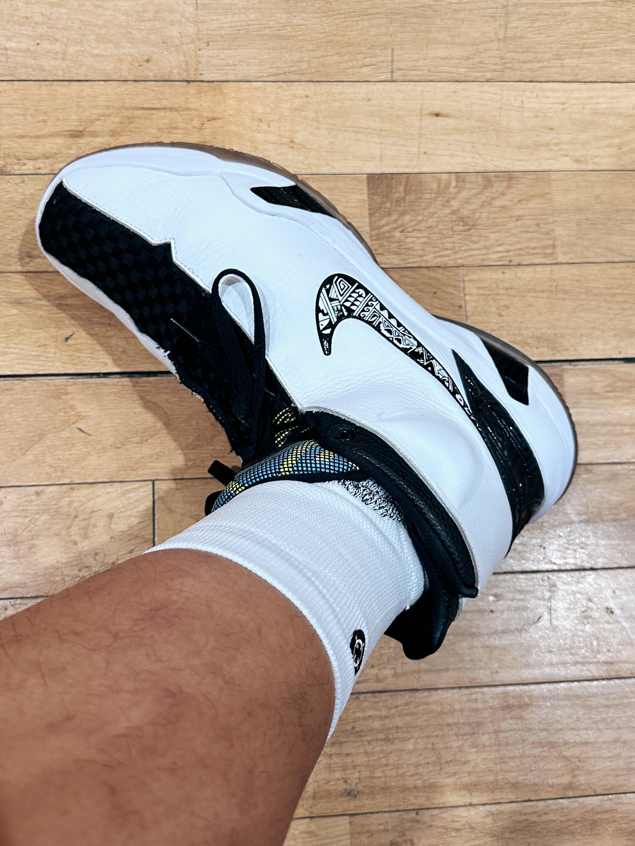 总的来说复古的鞋型,保暖的属性,澎湃的脚感,以及高帮对脚踝的保护,都非常适合冬季里有点体重,喜欢打身体,不追求速度,不要求防侧翻的内线们!不管是自己练球,还是养生局,再或者精英局都没问题!
