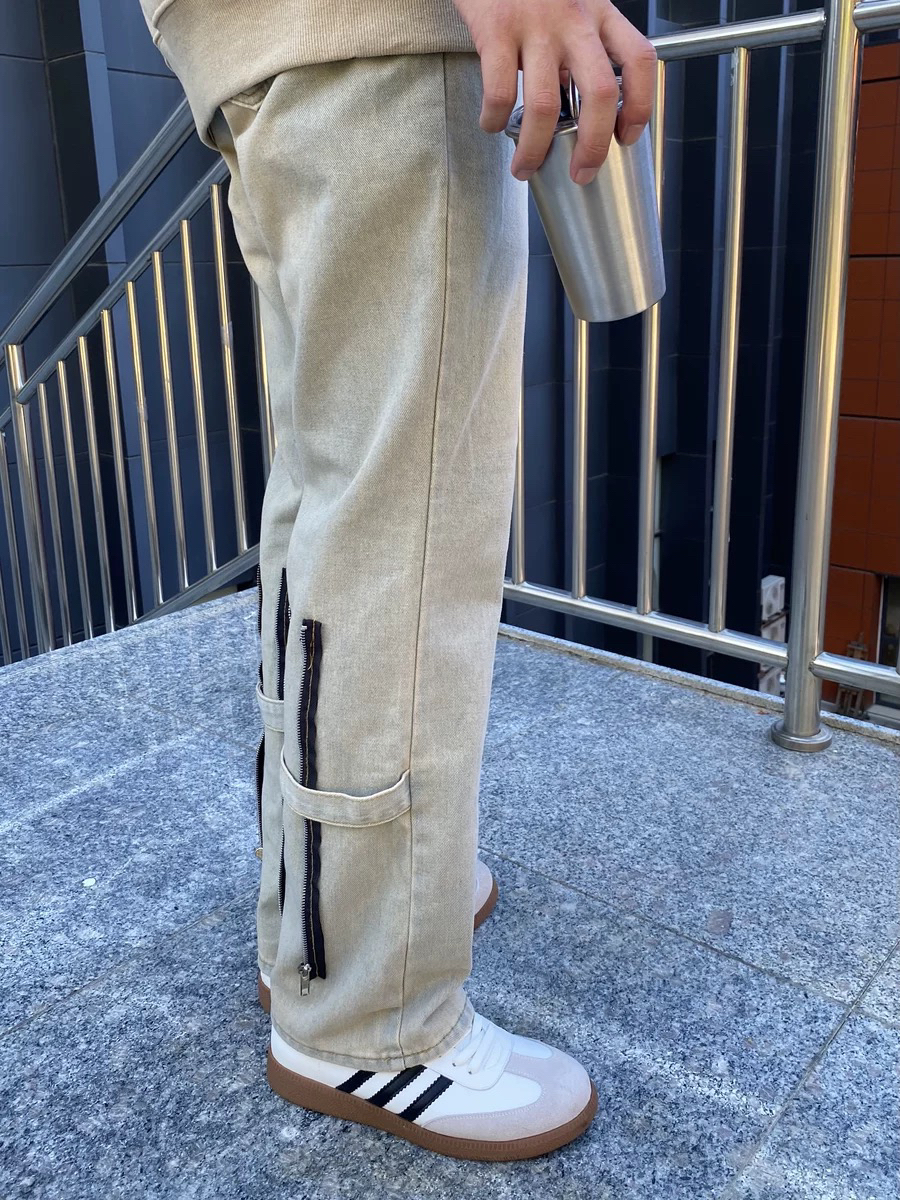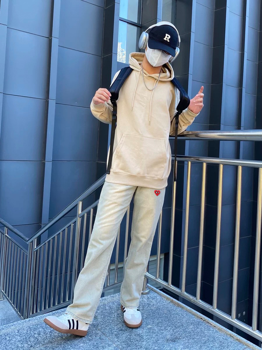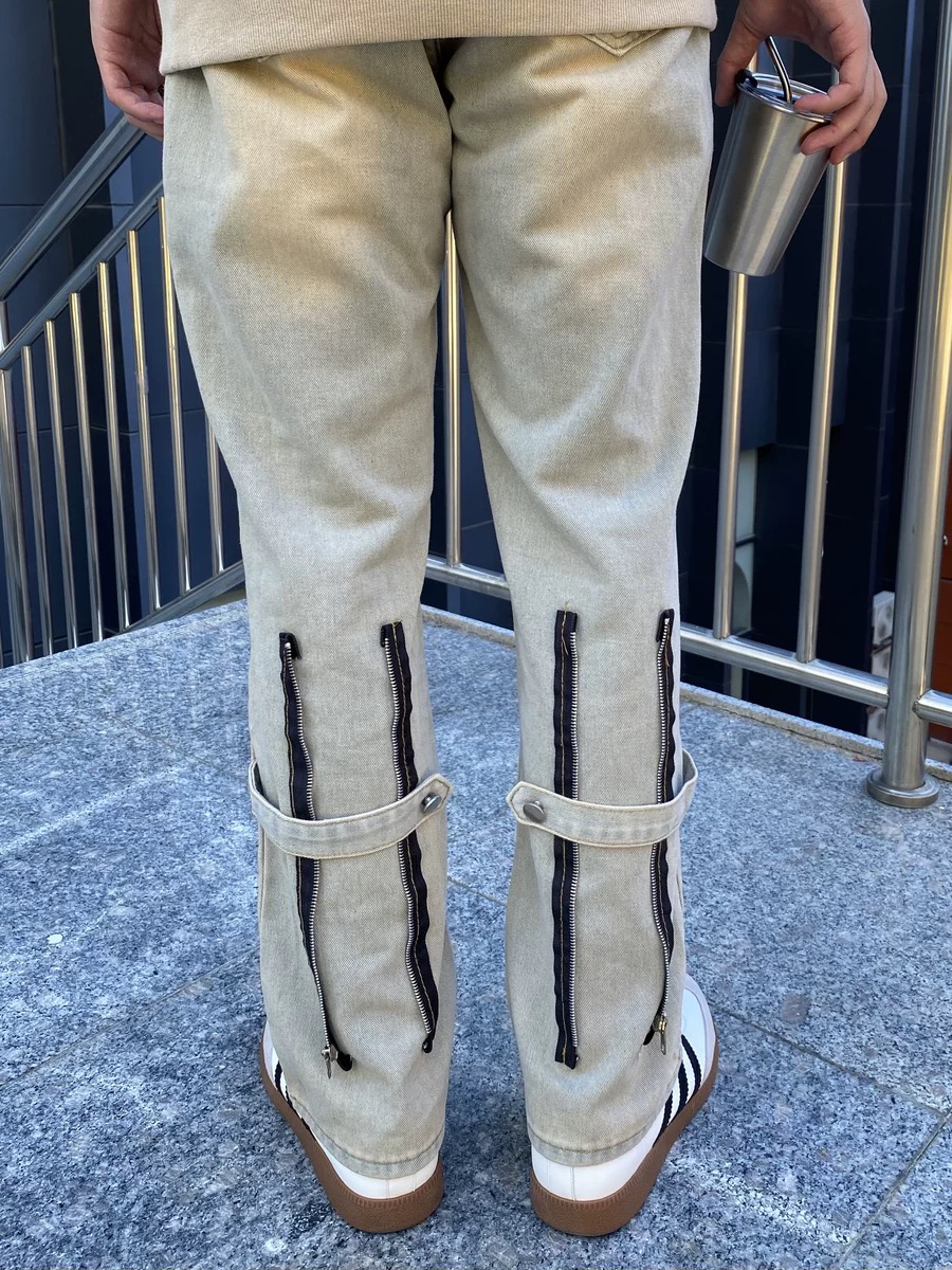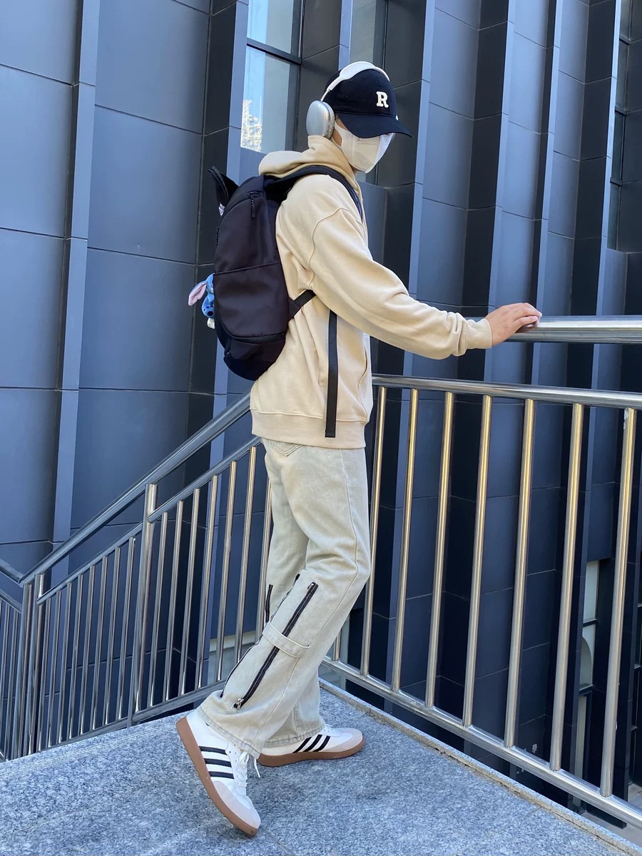 无法拒绝的高街穿搭,谁穿谁时髦,后侧拉链设计的泥黄牛仔裤真的很特别,搭配连帽卫衣,减龄又满满街头风