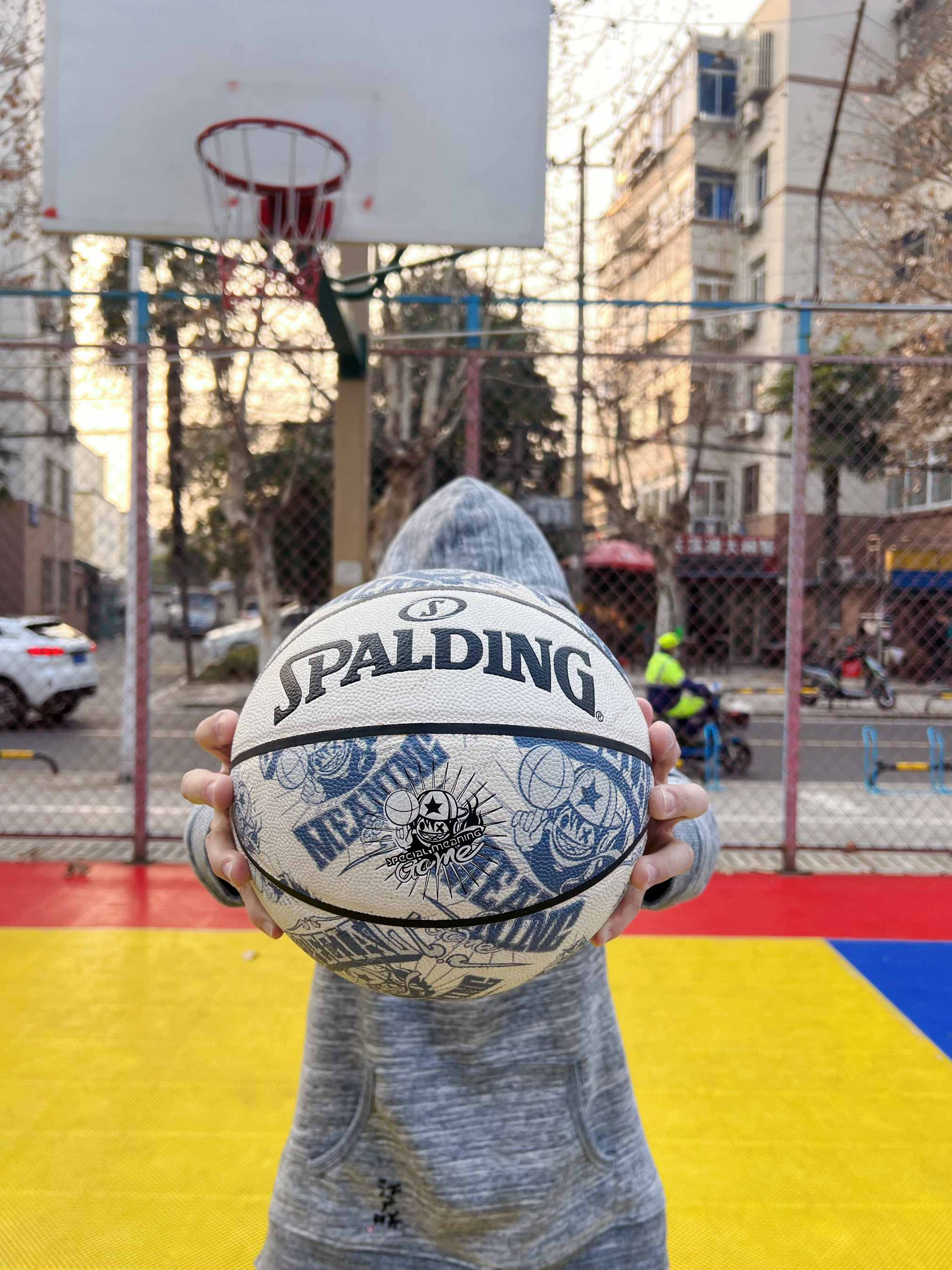 日常打球怎么可以没有一款颜值能打的篮球呢⁉️ 今天给大家分享这款 SPALDING斯伯丁『篮球小子』7号球 整体的白蓝色调很清爽 颜值是真的高👍 球面上设计有篮球小子涂鸦印花图案 很有潮酷的嘻哈街头风格 PU皮的材质 表面颗粒感很强 也很粘手 防尘和耐磨效果也是很NICE‼️ 整体来说这是一款又帅又能打的篮球🏀 目前1️⃣0️⃣0️⃣➕的价格也是蛮有性价比的 无论是自用还是作为礼物🎁都很不错哦‼️