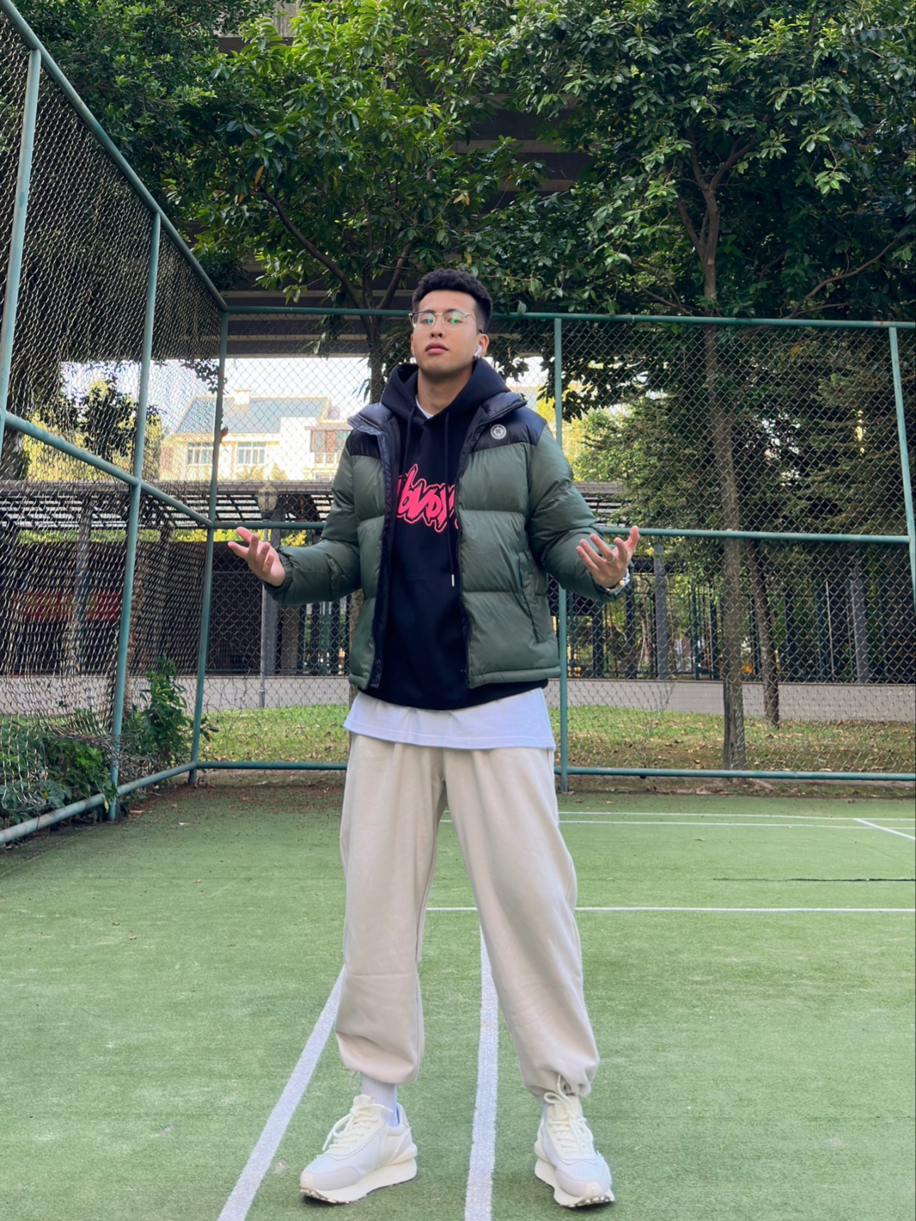 上身一撞色拼接羽绒服,鲜艳的色彩搭配戳中俺的时尚神经。再搭配上束腿运动裤,时髦与舒适并存,冬季出门的最佳选择! 最后上脚一双莎菜茜SALAXI 拼接复古阿甘鞋。不仅透气,舒适,更是超级百搭!无论和运动裤还是阔腿裤搭配,都能瞬间为整套穿搭增添亮点,厚底的设计,穿上之后身材更显的高挑