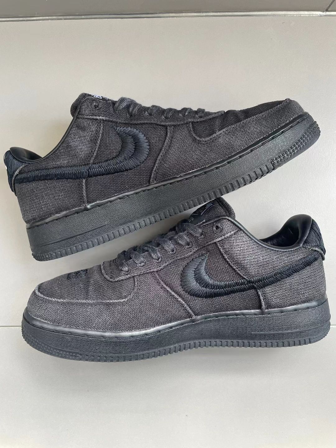 1Stussy X Nike AF1 Low斯图西联名款 经典的AF1由 Stussy匠心演绎以全黑色配色呈现的同时采用了经久耐穿的麻类材质 2鞋头饰有低调的Stussy品牌logo刺绣而鞋面品牌标志和后跟标签同样以此效果呈现 3 后方则以独特的金属配件点缀尽显耀眼光泽此外经过重塑的Worldour鞋舌标签无疑诠释出街头穿搭包含的无穷魅力更印证了两大品牌遍及全球的非凡影响力。 4这款鞋的话秋天搭配...
