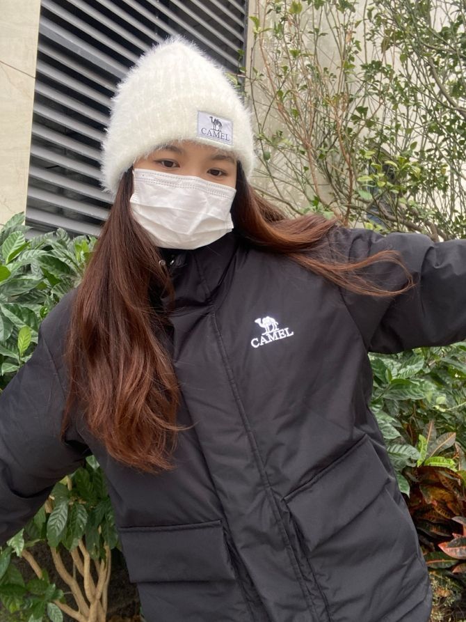 毛毛的帽子没有哪个女生可以拒绝吧,戴上马上可爱加分! 帽子实物真的好舒服哦,面料很柔软可以很轻松折叠起来,不戴的时候放在包里,再拿出来也不会变形 帽型也很不错,一体成型,视觉上更显脸小! 秋冬可以搭配黑色冲锋衣或者羽绒服都很好看呀