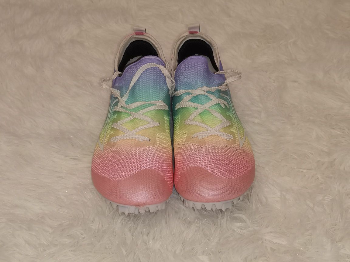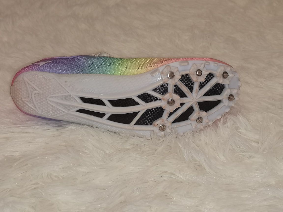 鞋面:一体式编织鞋面,透气性还不错延展性也很好,但是穿久了会慢慢变松,尺码一定要买合适,我买大了,有一点点掉跟。鞋面可以打 外底:全掌 pebax 加上¾掌的碳纤维板刚性十足,比 nike 的super fly ellit 要高,回弹也不错,个人感觉碳板提供了主要的回弹,穿了这么长时间到现在刚性依旧保持。外底可以打 鞋子整体跑动起来感觉前掌滚动感蛮强的,跑过一次 800,感觉在最后一百米纯靠鞋...