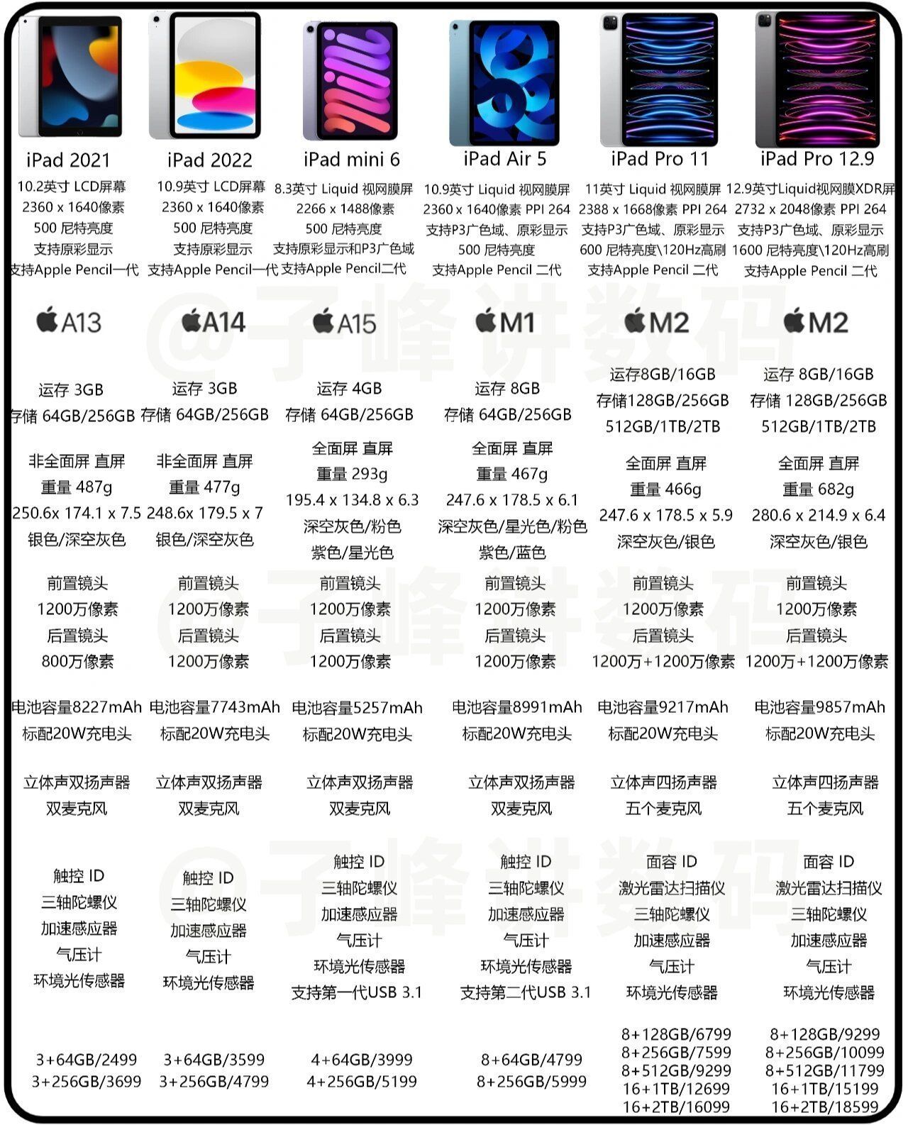 【2022年在售iPad配置表,一张表让你看懂iPad】,由用户 子峰讲数码 分享,来自广东。这是一篇来自识货社区的真实用户分享笔记。