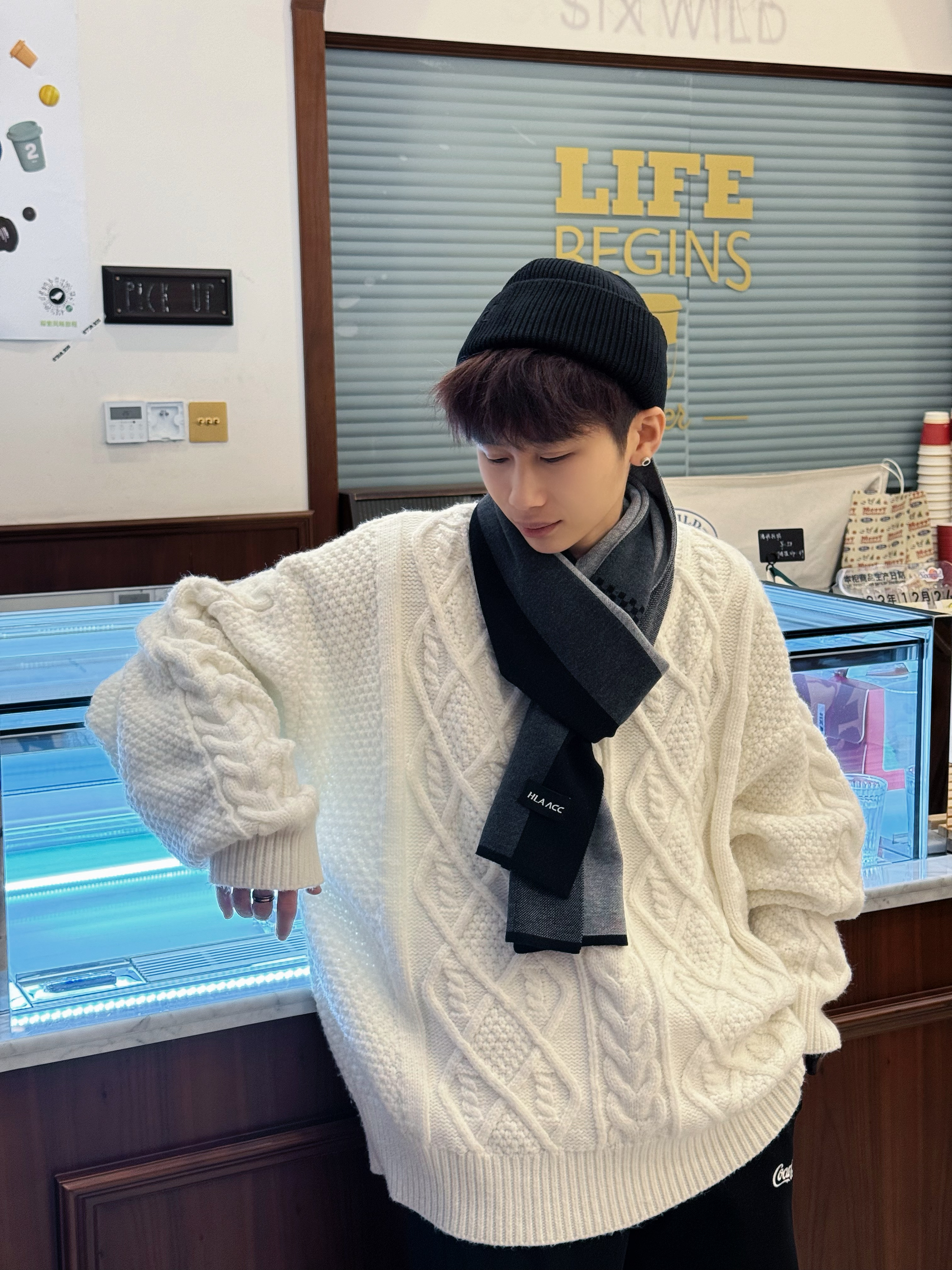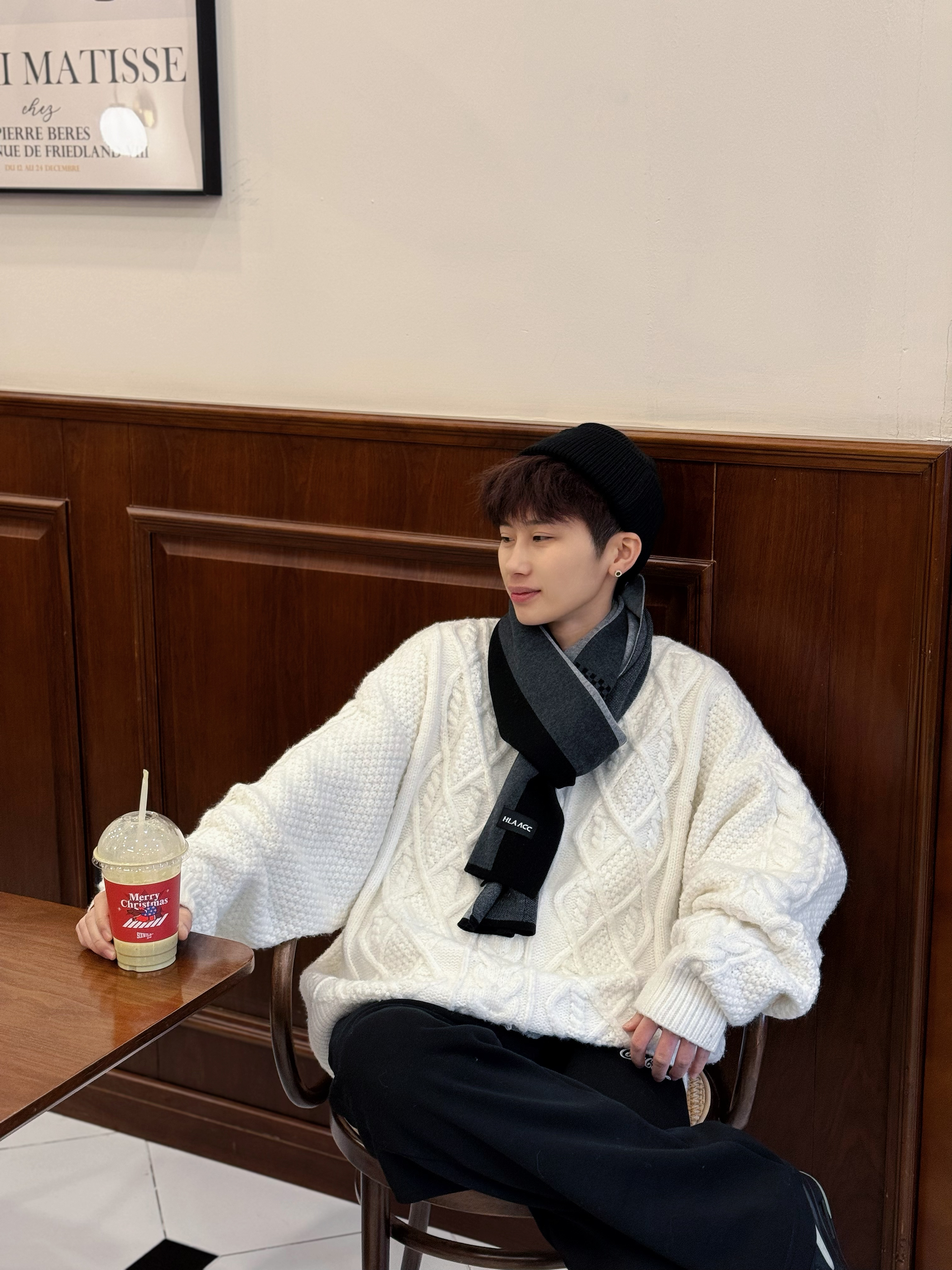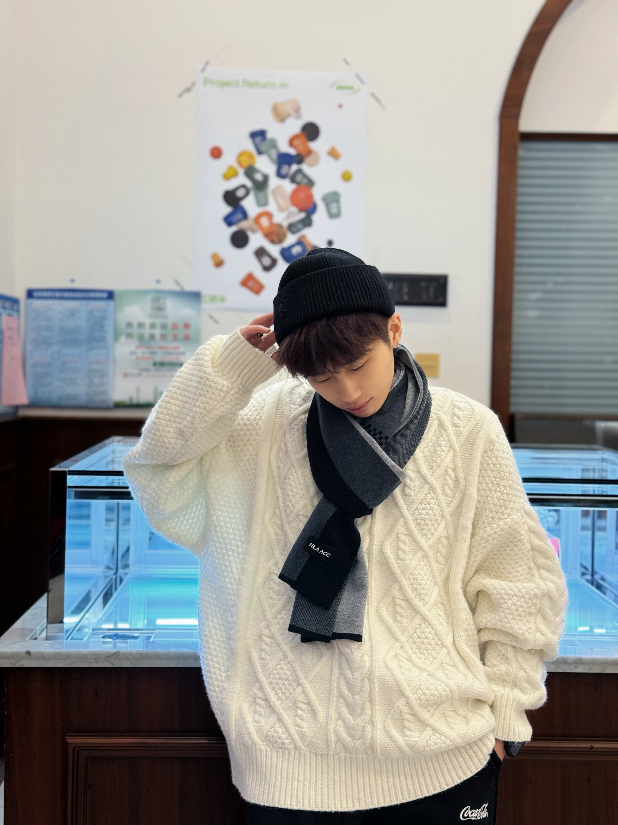 白色毛衣配围巾,很有氛围感 慵懒又很好看 配饰方面,搭配海澜之家深色的围巾和帽子,让整体穿搭更有层次感 渐变的黑灰色系就很百搭 羊毛的面料很亲肤,戴起来又很暖和 黑色毛线帽弹性很好,不勒脑袋 懒得整发型的时候或者刮风拍照乱飞的时候,可以用它来救场✅ 软糯的白色粗织麻花毛衣,自带冬日温暖属性 下身搭配黑色直筒裤,垂感很好会很显瘦 🧢、🧣:海澜之家