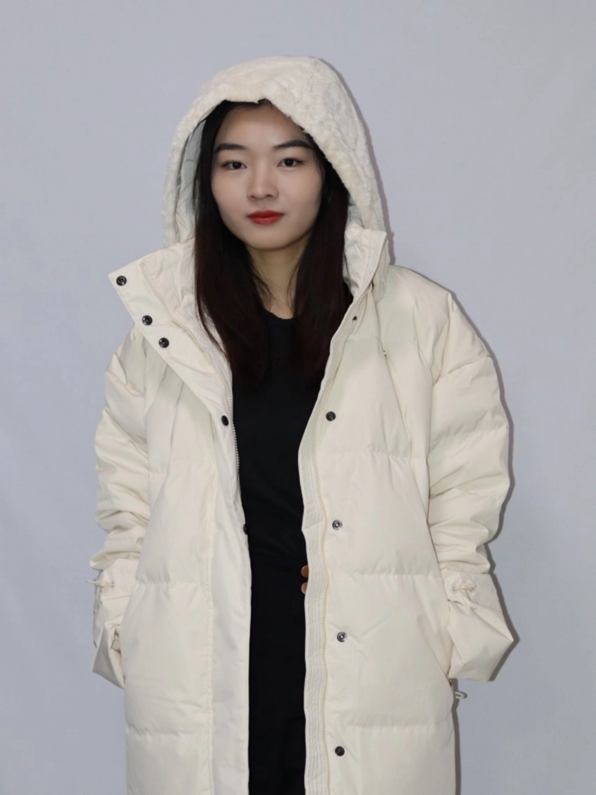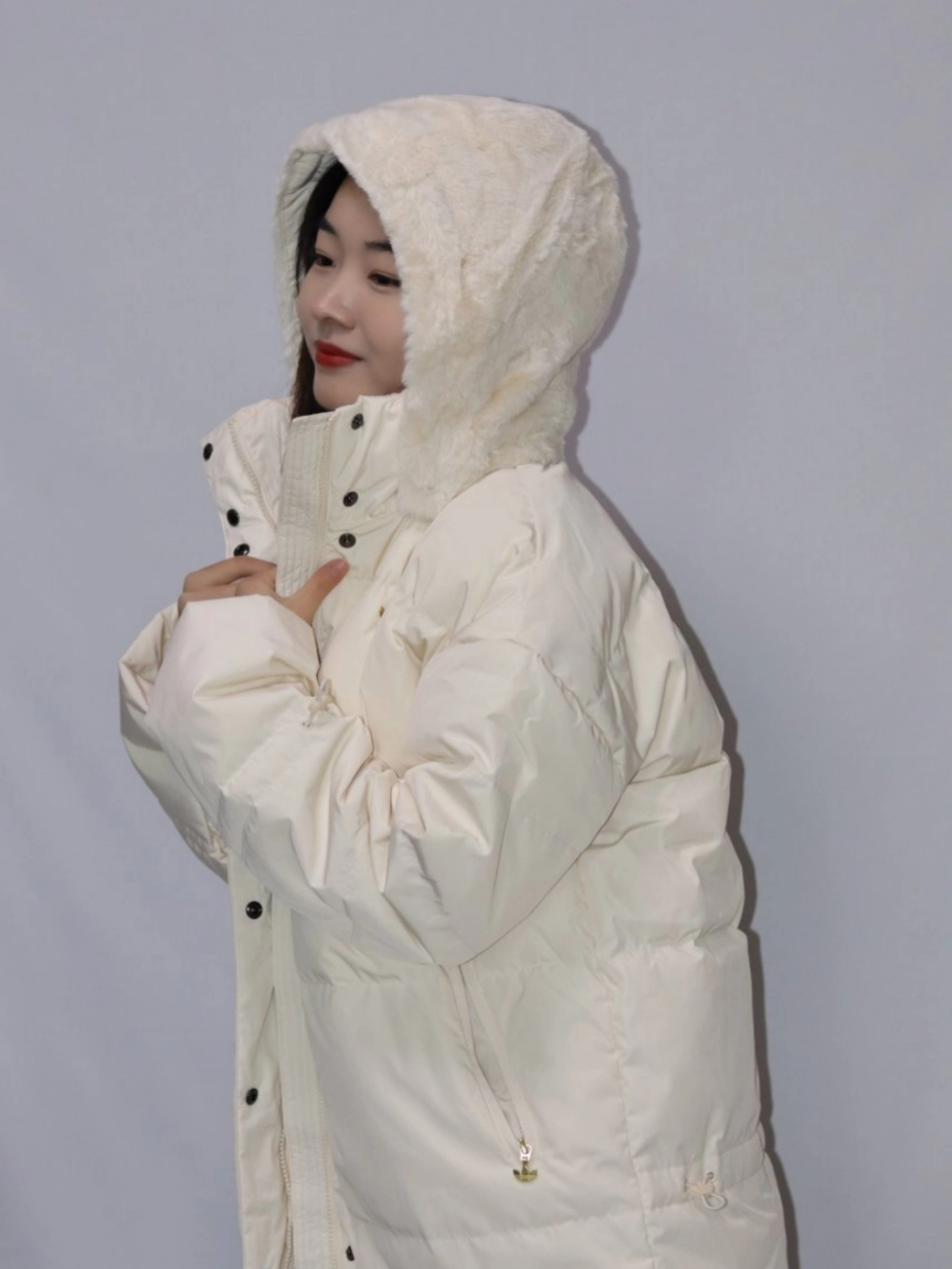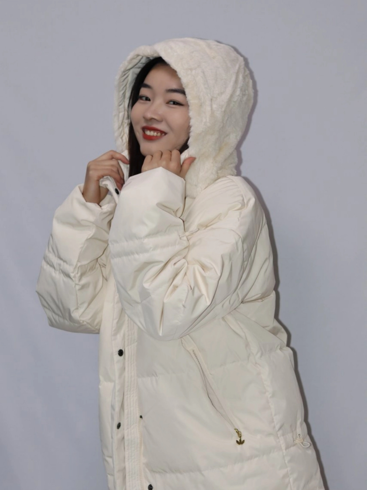 这款白色羽绒服真的爱了,它的帽子真的太好摸,无敌了。连帽还有拉链,很细节了。不管是款式、面料、里料,还有绒的蓬松度,都让人很舒服。女生穿刚刚好盖住屁股,上身不臃肿,百搭超时尚。 (图片来自网络,侵删)