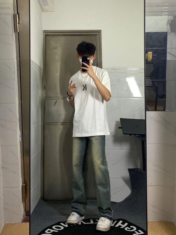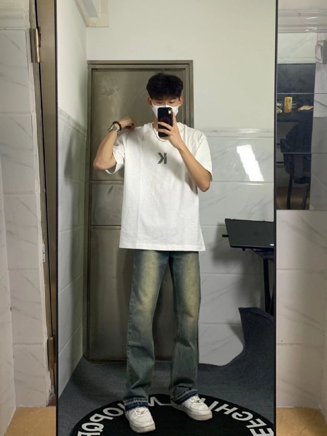 男生穿的简简单单就很帅!! 简约白色T恤➕做旧牛仔裤➕小白鞋 一套下来氛围感满满‼️ #男生穿搭[话题]# #少年感穿搭[话题]# #日常穿搭[话题]# #大学生[话题]#