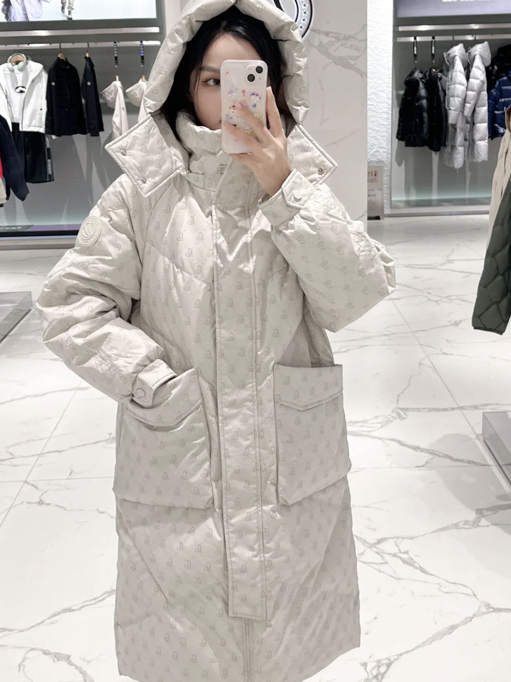 男朋友给买的羽绒服,真滴好喜欢呀 燕麦白色很耐看,也不会像纯白色那么容易脏 版型很合适,不会特别宽松,显得人很臃肿! 面料摸着滑滑软软的,很舒服,整体设计很简约,只有胸口品牌logo和背后的字母印花,爱了! 400不到的价格我觉得性价比不错!
