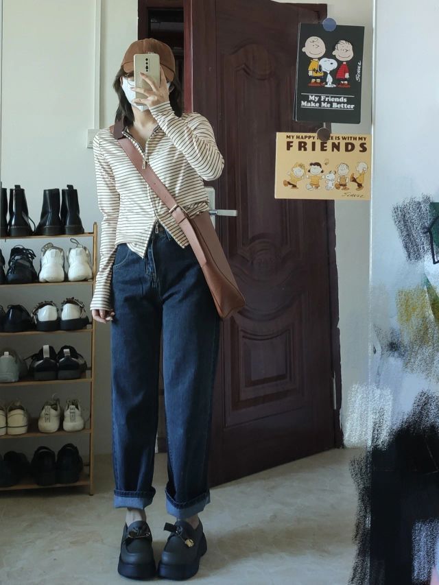 身高156/体重95 微胖女生也可以做辣妹! 连衣裙:Amyway潮人馆(又纯又欲的连衣裙!有一丢丢微透,不影响) 小皮鞋:伯爵家猫(颜色很特别,也很百搭呀,质量很好) 条纹长袖:TOP驿站服饰/pdd(拉链设计真的有点绝!内里薄绒,质量不错) 牛仔裤:小米熊韩版女装(裤子腰部是不规则设计,质量不错,版型很显瘦) ———————— #今日穿搭|每日穿搭|小个子女生穿搭|秋季穿搭|秋天穿搭|秋冬穿搭...