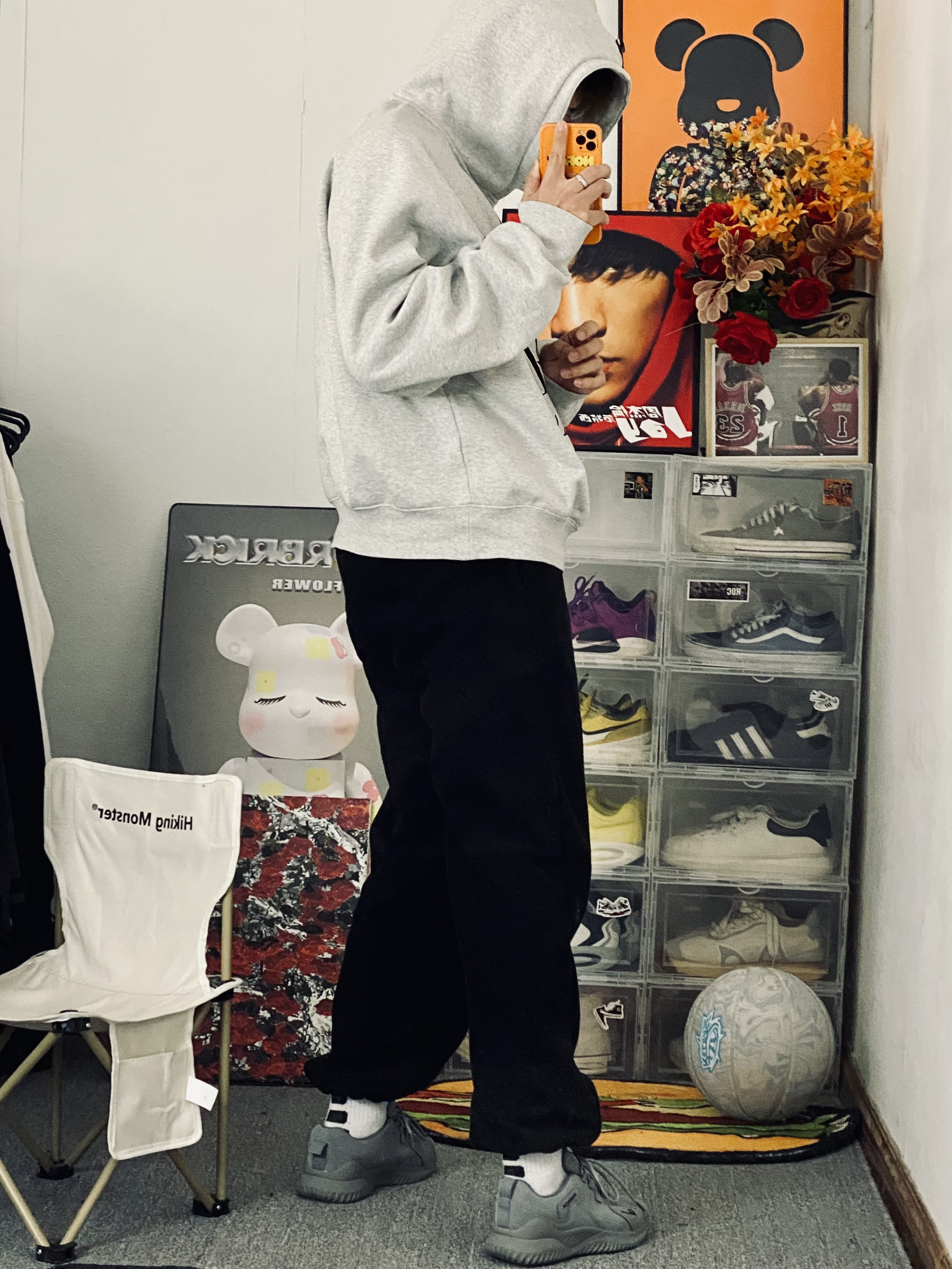 🔥冰美式今日穿搭 👔衣服穿的是一件灰色重磅卫衣 里面是加绒的 宽松版型你们可以多穿一点 灰色的衣服配灰色的鞋子不容易出错 🙈 — 👖裤子的话就穿了一条摇粒绒黑色刺绣卫裤 裤脚抽绳设计 一条裤子两种穿法 兼据运动和休闲风格‼️ — 👟鞋子的话就是一双回力的百搭低帮休闲鞋 不过百的价格性价比还是不错的 鞋子上脚整体很轻 鞋码有一点偏小建议买大一码哦🎱 日常穿搭出门逛街什么的还是OK的 身高/体重...