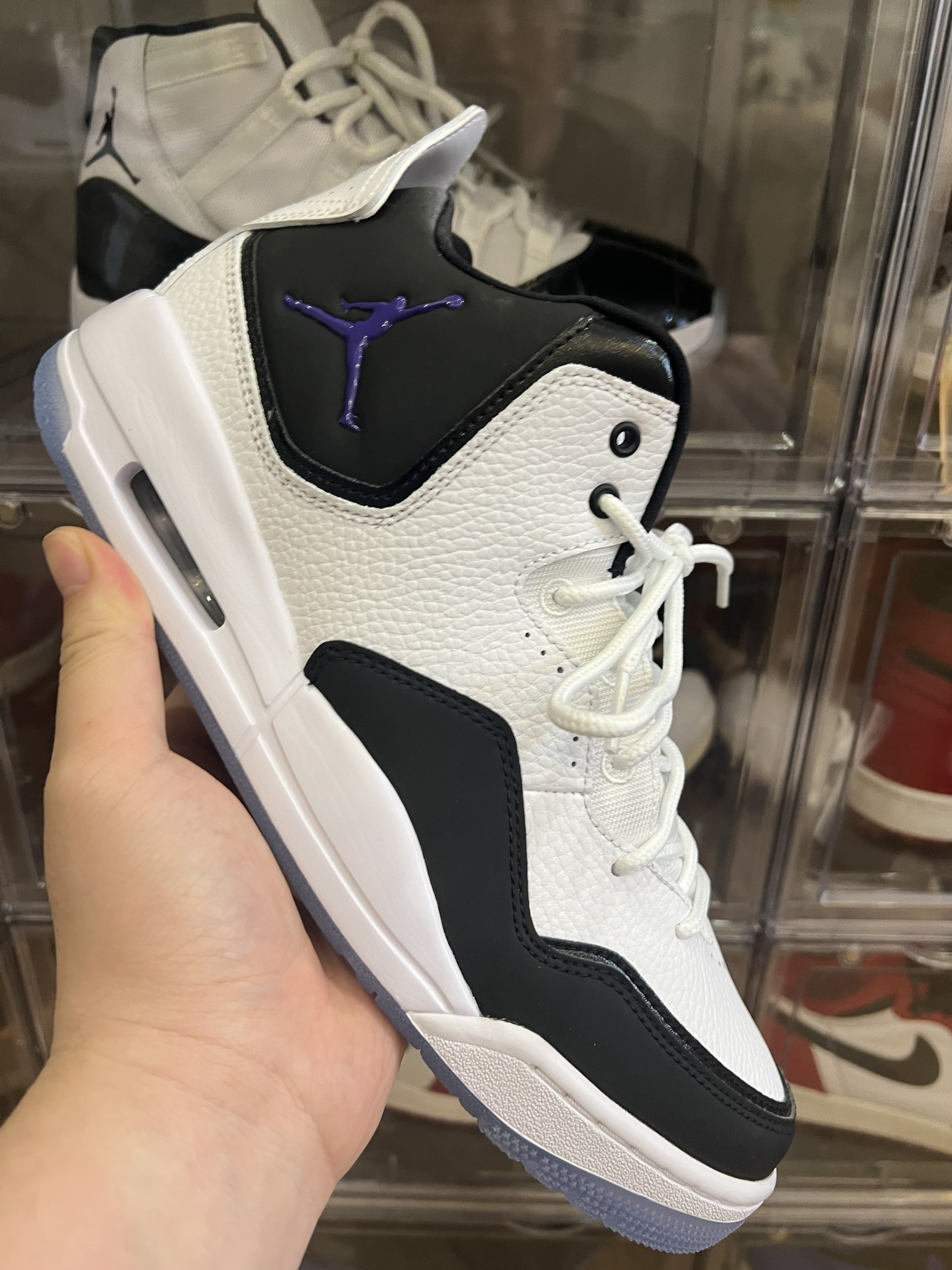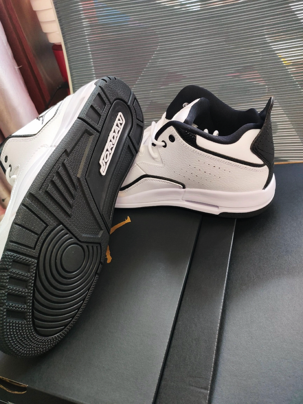 👟:Air Jordan Courtside 23 鞋子主要采用黑白主色调,是皮鞋面哦!非常有质感!配上小飞人logo点缀,简直是锦上添花!黑白色真的是最百搭的颜色!脚感也很好,鞋底很软!鞋子包裹性很强,配上黑色裤子,上脚绝对的好鞋,价格非常适合学生党啊!!!价格真的很香!真的可以闭眼入啦~真的真的很推荐啦!喜欢的抓紧入手哦~