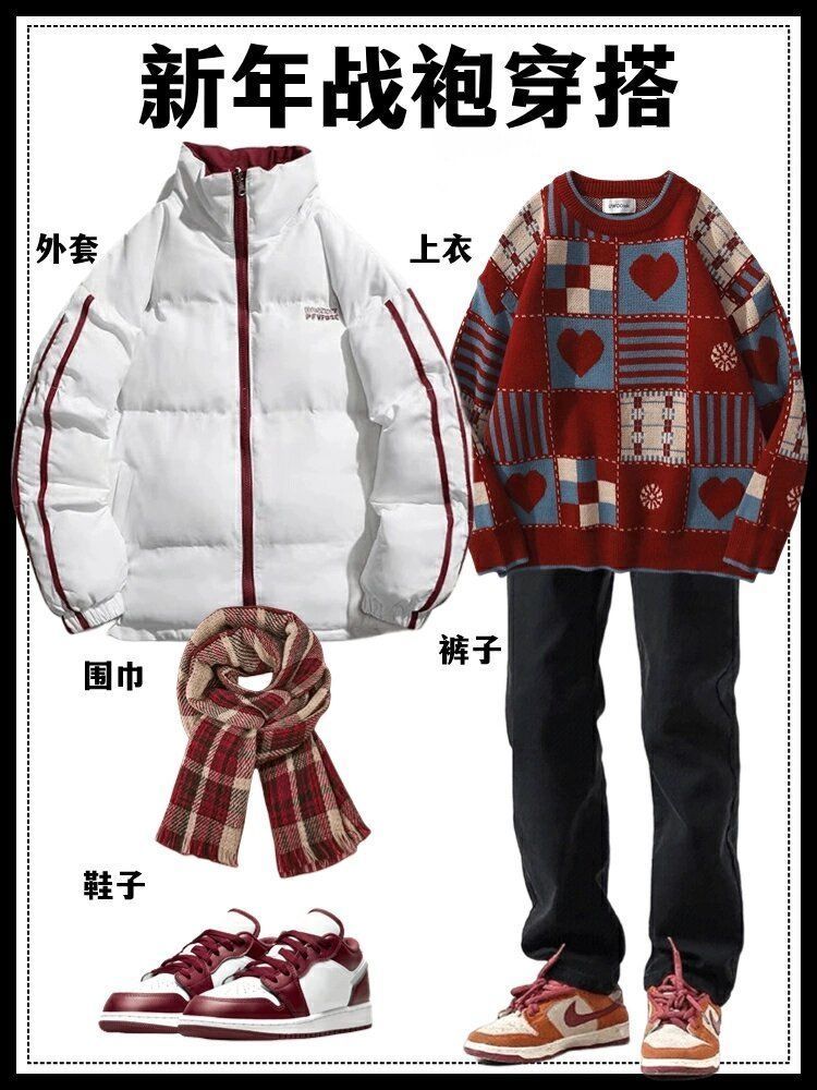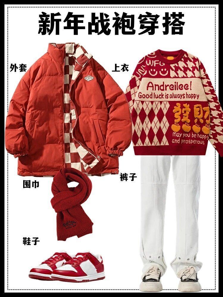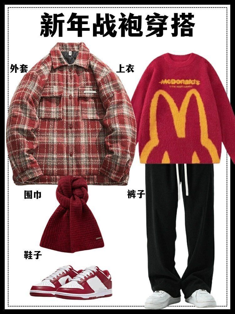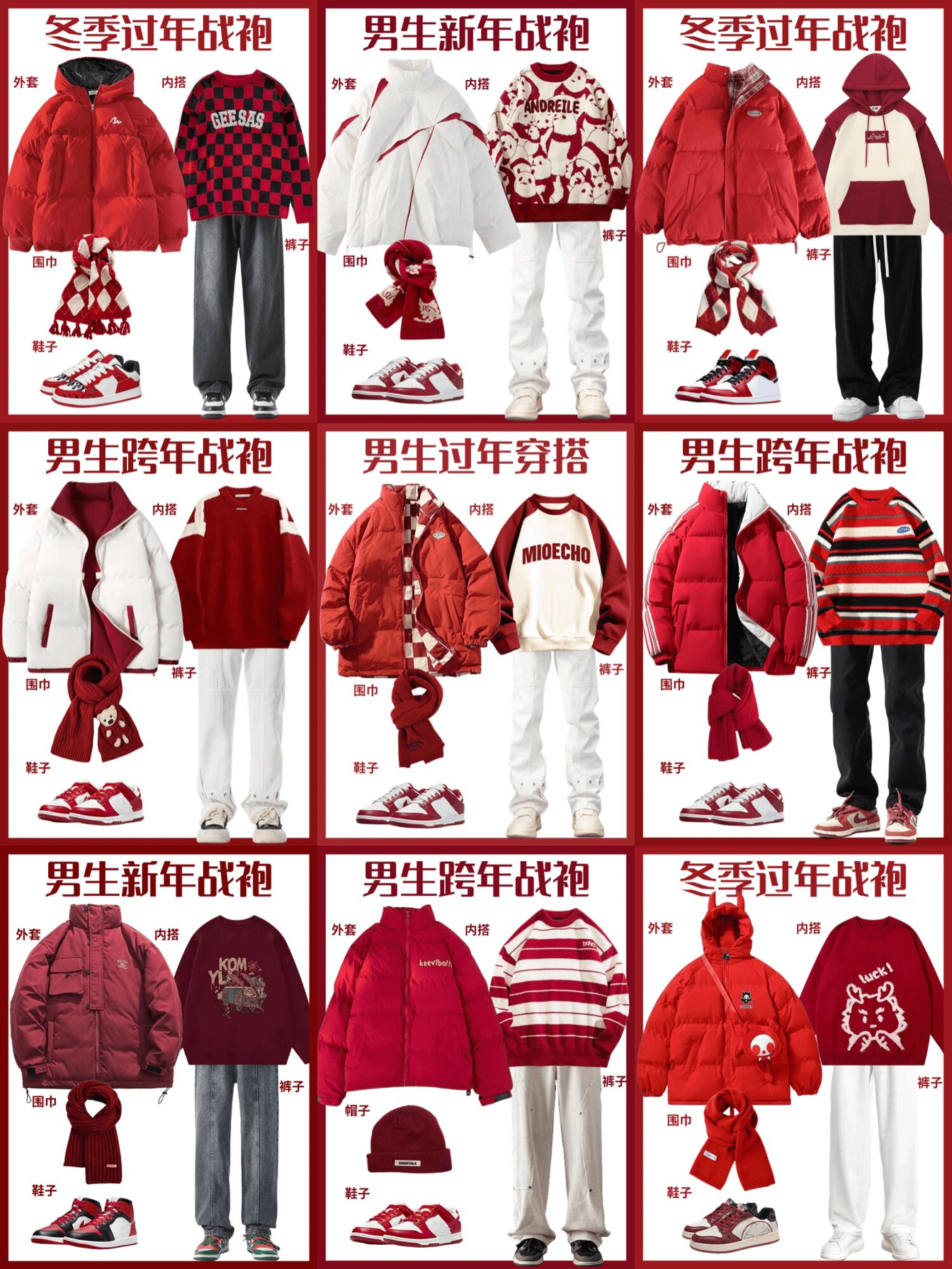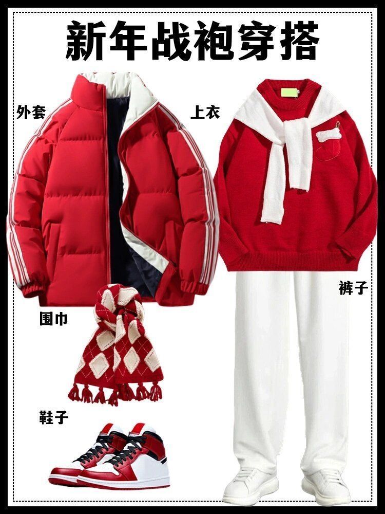 🔥冬季来啦!男生们准备好迎接新年了吗? 🎉别担心,我来给你们带来一波红色系穿搭灵感💪 ❄️冬天给人的感觉总是有点冷冷的 但是一身红色可以瞬间点燃你的气场! 不管是红色外套、红色毛衣还是红色围巾 都可以给你带来暖意满满的穿搭氛围❤️ 💪搭配一条黑色牛仔裤,简约时尚又不失个性