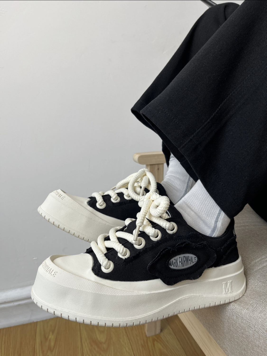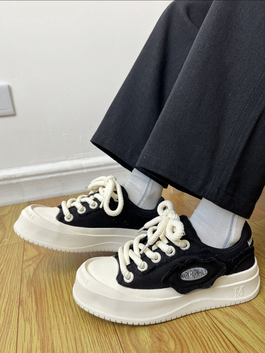 鞋子的颜色和穿搭相呼应整体和谐又不失品味 很喜欢这双板鞋的设计感 两侧的鞋标还可以拆开个性十足鞋底大大的印花细节控真的爱了。 而且识货补贴真香,趁活动闭眼入!