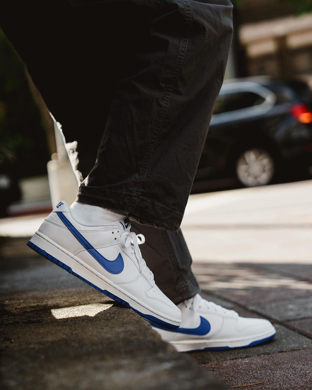 这双低帮的Dunk虽然是用了最为简约的白色,而且鞋型上也没有大的改变,但整体穿搭起来还是十分好看的,而且能与之相搭配的风格比较多,鞋身两边的蓝色的swoosh又为鞋子增加了清新感,但脚感上是偏硬的。