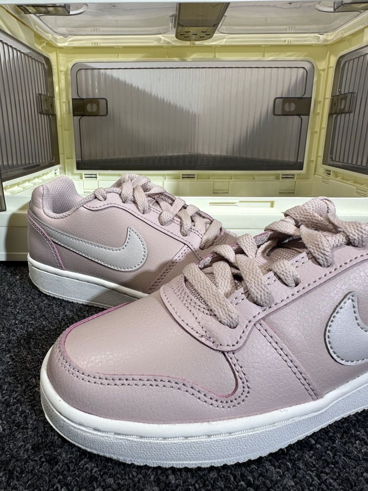 🌈🌈今日分享:nike ebennin 粉色 ☔☔首先这双鞋的配色粉粉嫩嫩的,真的很讨人喜欢💕也不是那种特别鲜艳的粉色,淡粉色给人一种柔弱的感觉特别好搭配💕(粉色万岁 ) ☔☔上手后摸起来很光滑,但是又能很清晰的看到这种纹理,非常棒的材质(就算有油渍,你拿个湿纸巾擦一下就可以了) 🌈🌈尺码不偏❗200+💰就能入手❗颜值,做工,材质都嘎嘎棒❗