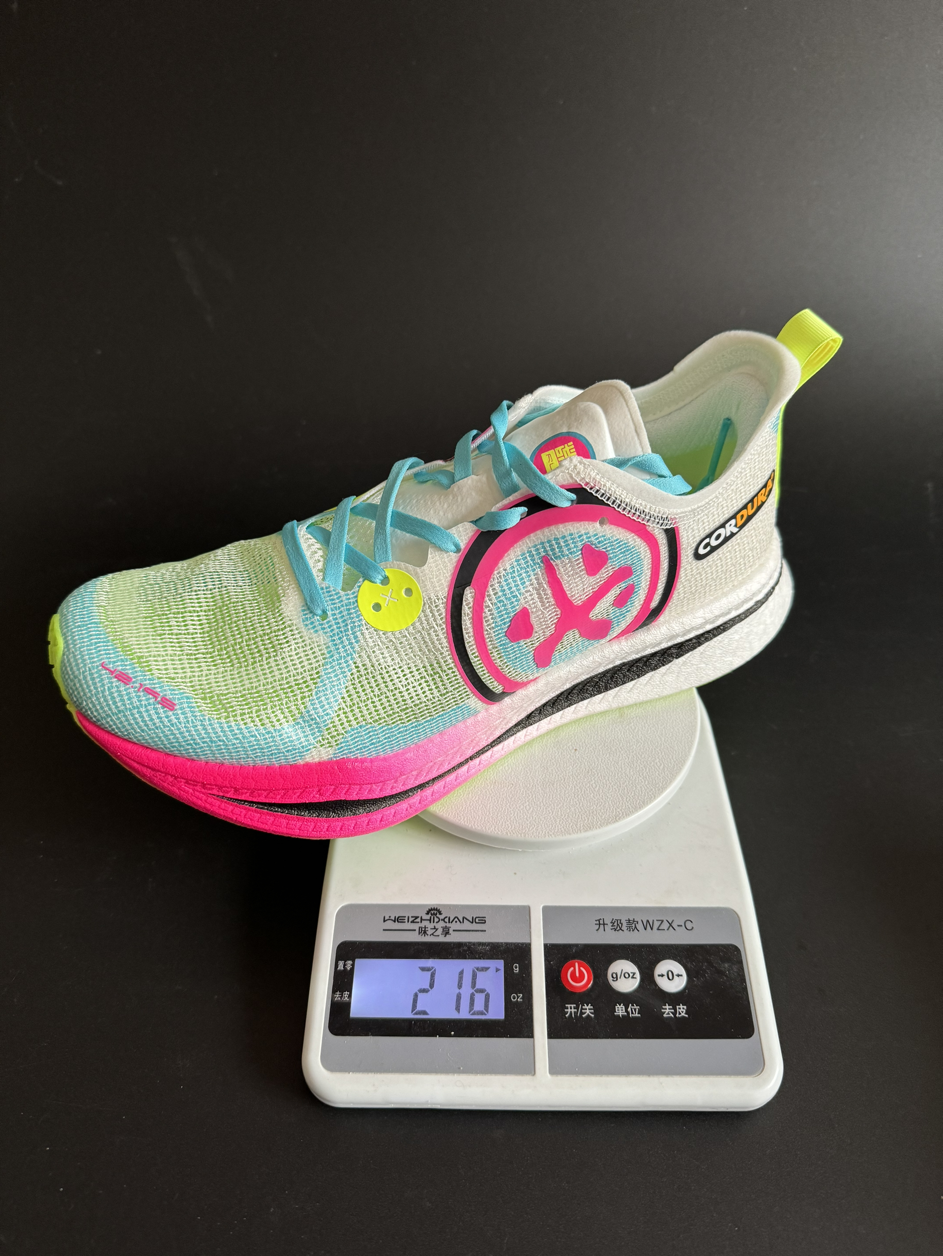 这双跑鞋我说它是国产跑鞋天花板存在过分吗? - 惊碳2.0,这是一双鸳鸯的配色,配色方面真的太炫了,一般除了跑步基本上很难搭配衣服,鞋底也是湖蓝色和荧光绿的颜色,鞋带也是呼应的颜色,适合比较跳的小孩哥、初中生高中生穿 我穿42码,单只216g,什么概念,全掌产型碳板跑鞋这个重量轻量化无敌。鞋面非常透气,编织的鞋面可以说是360度无死角透气了,不过冬天穿肯定会冷啦! 缓震方面,超临界发泡材质的缓...
