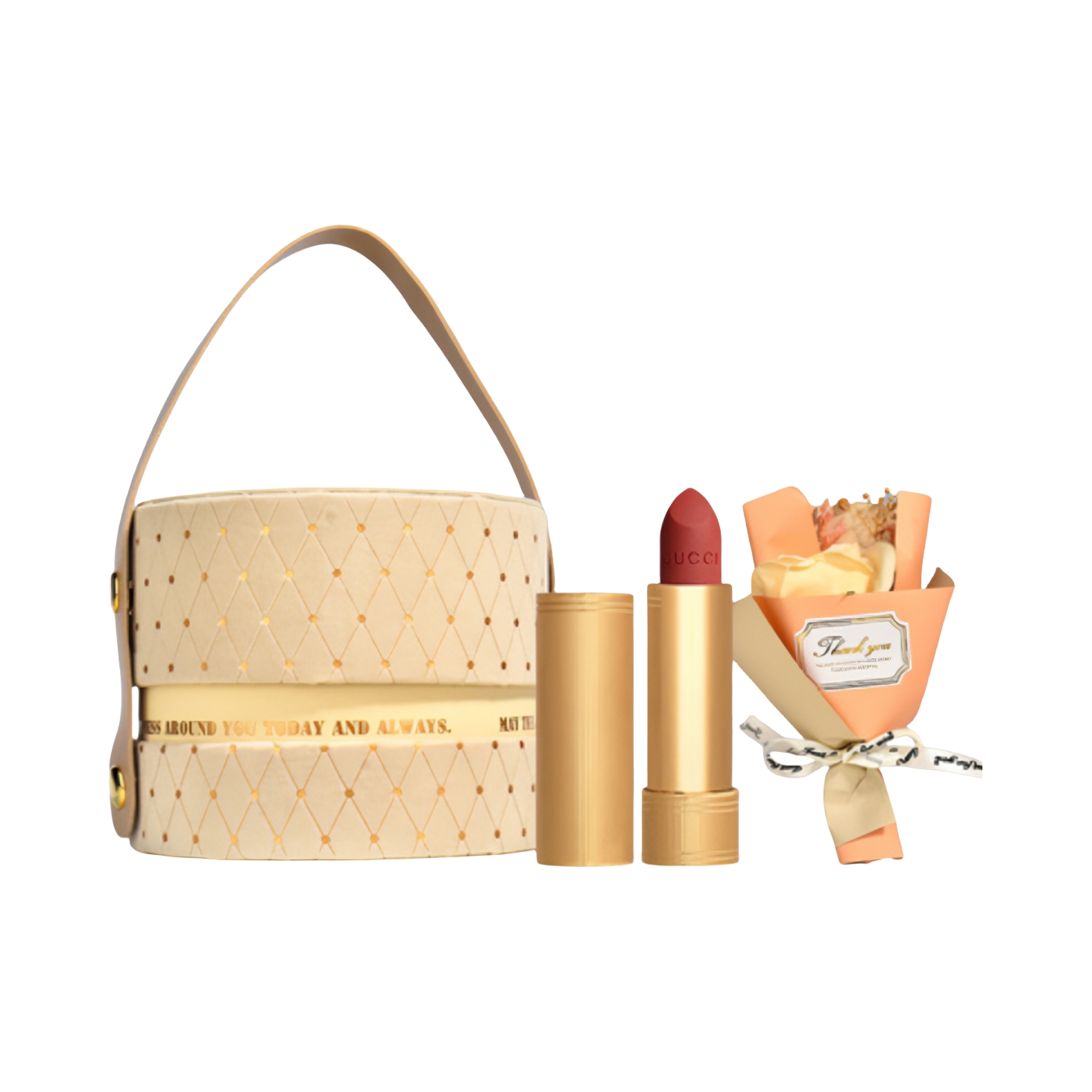 本篇笔记关联了Gucci/古驰 倾色绒雾哑光口红情人节礼盒 #哑光208+花束+礼盒等商品,为用户提供真实的使用体验和购买参考。