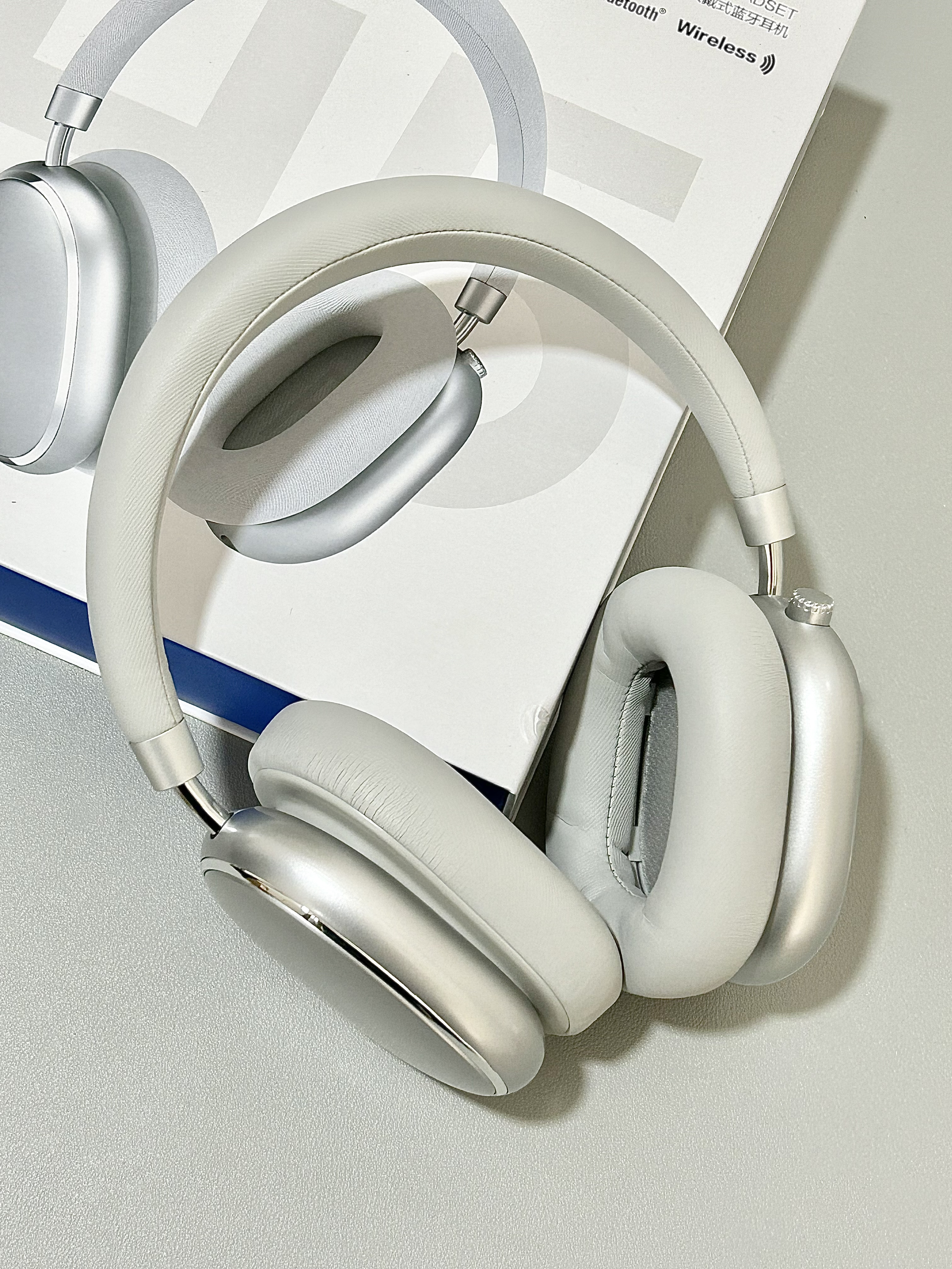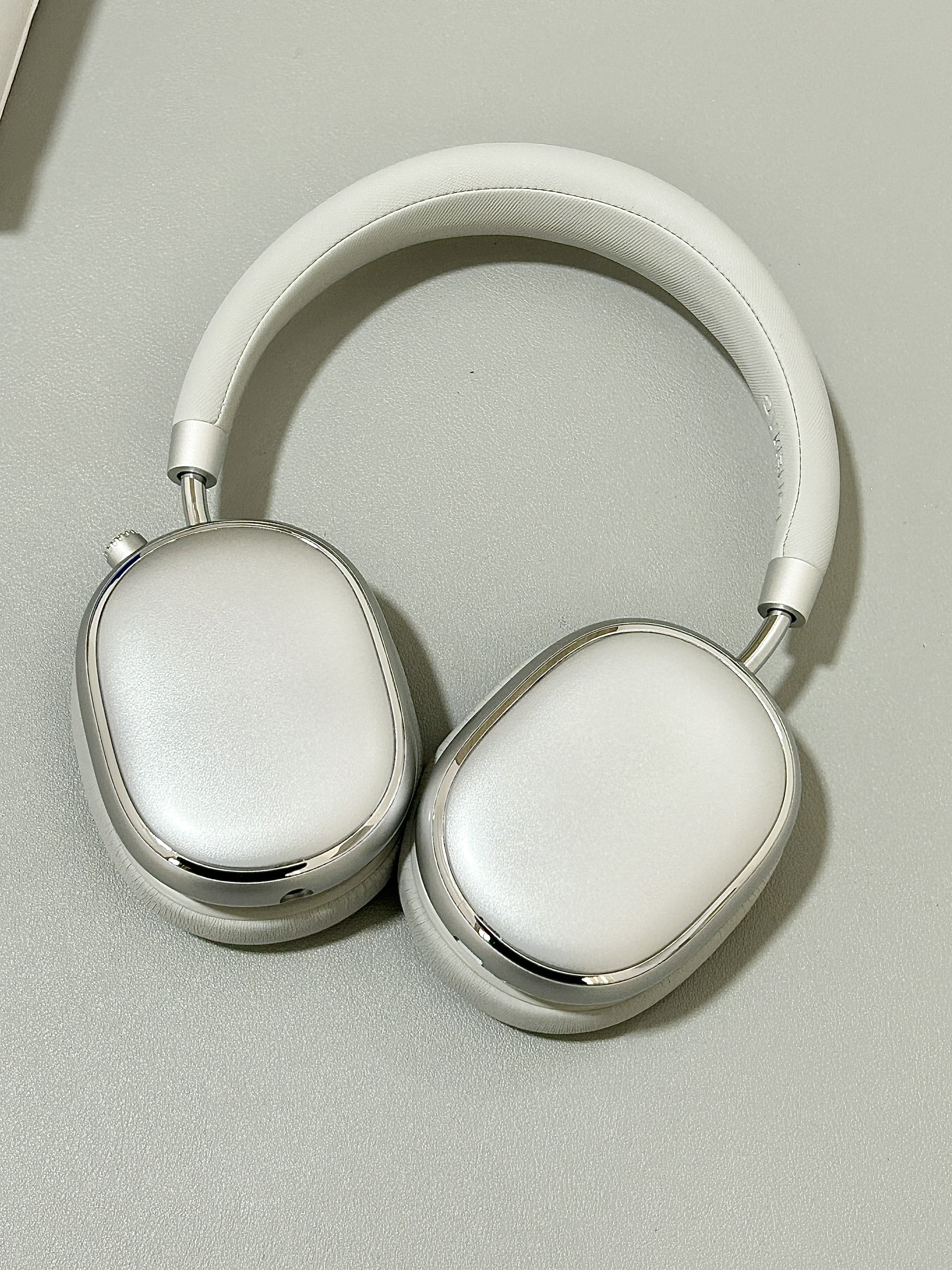 是银白色的头戴耳机,蛮有质感 音质清晰不漏音,通勤之类的都能戴 好好用,好喜欢!