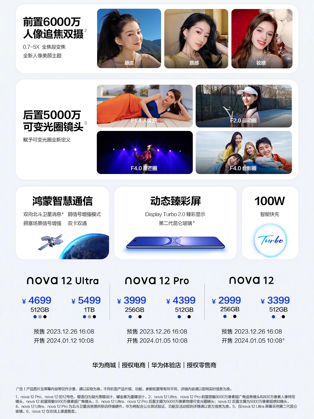 时尚先锋,百搭随心。#华为nova12# 系列,天生瞩目,出色蓝不住! 时尚先锋美学设计,搭配精致星耀环,璀璨夺目;业界首创一体化素皮压花工艺,浑然一体,宛若天成;nova首发等深四微曲屏幕光影纯净,触感丝滑。 强大人像影像,出镜蓝不住!#华为nova12# Ultra、nova 12 Pro,前置搭载全新双目立体视觉影像系统,首发三种人像美颜主题;后置支持5000万物理可变光圈,轻松驾驭多种...