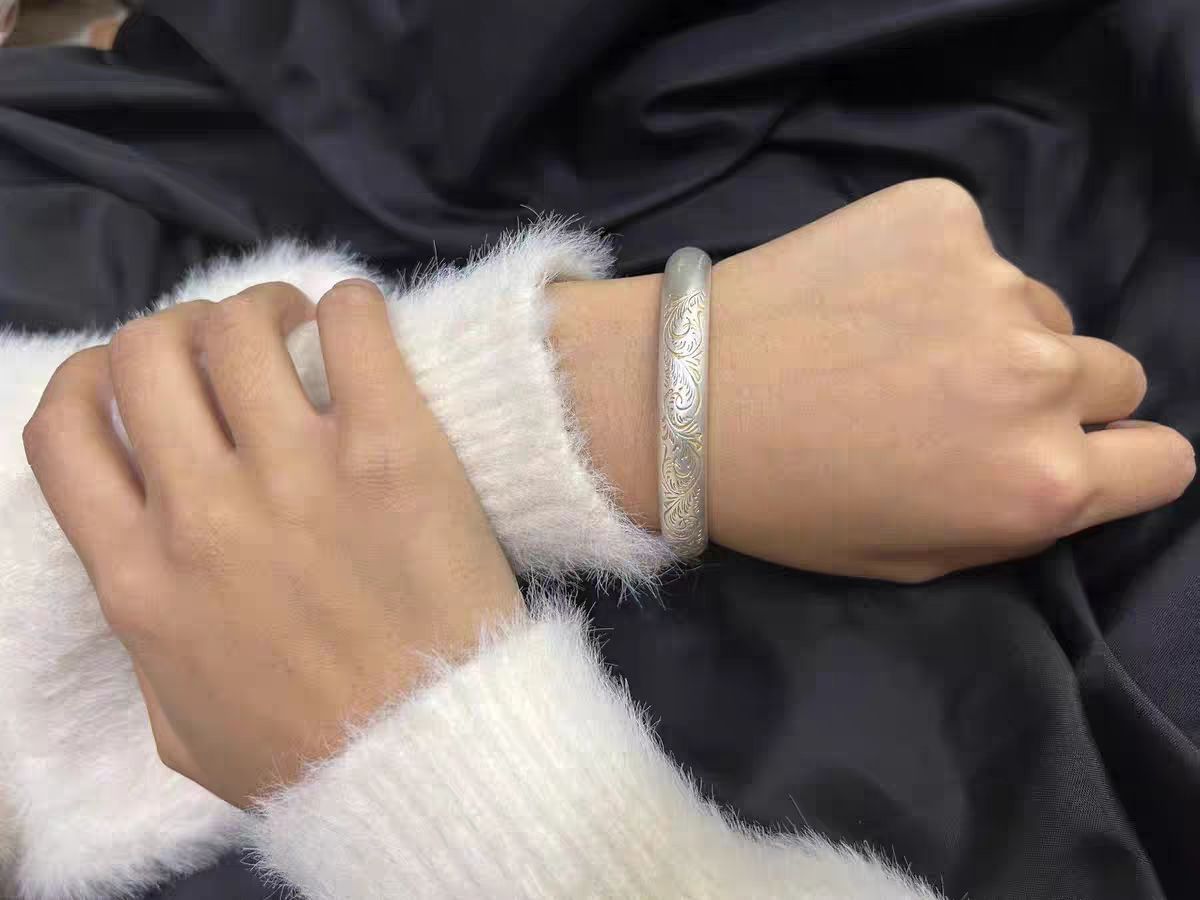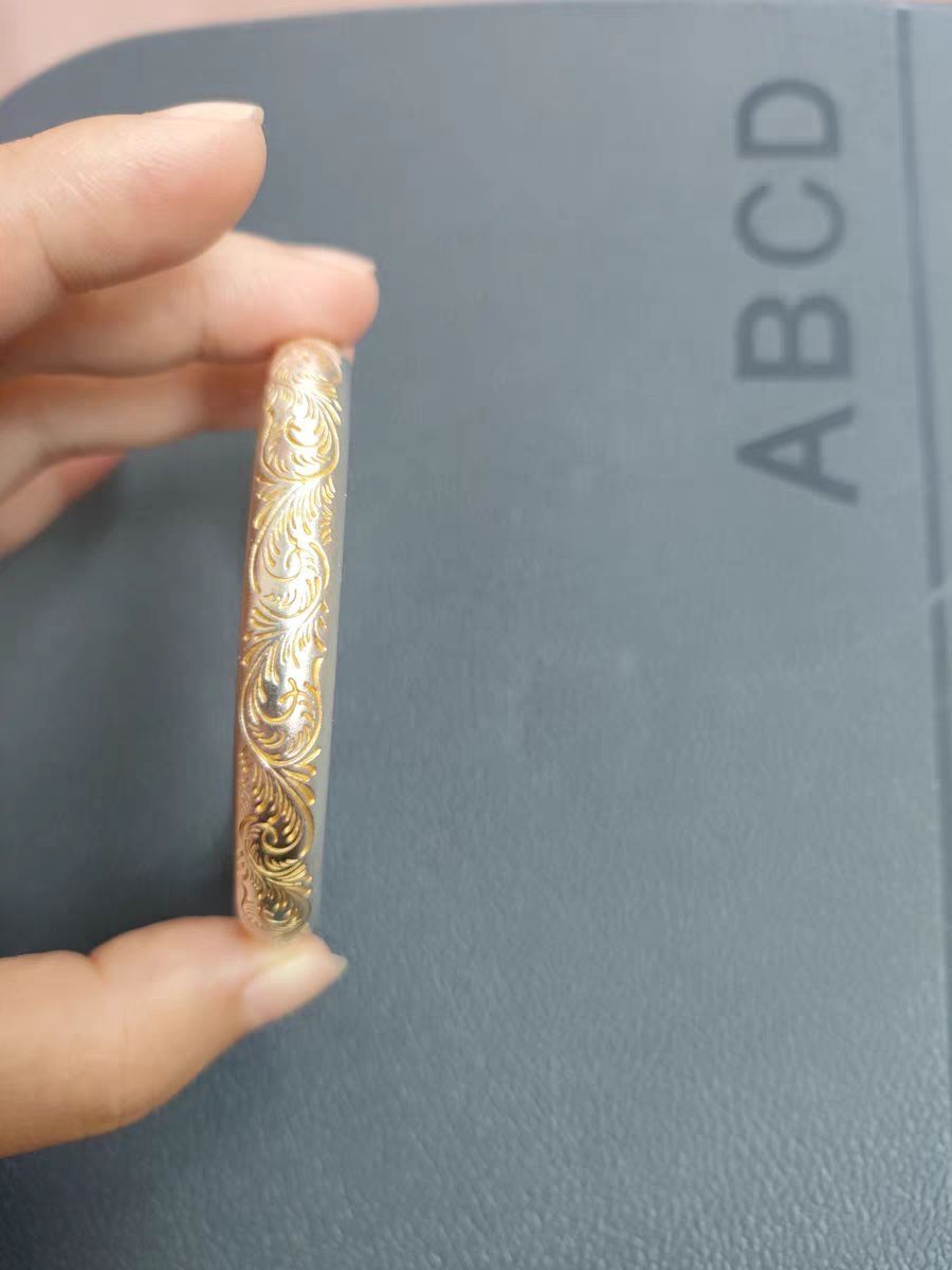 手镯做工非常精致哦,细节部分雕刻都做的很好~内部刻印是心经,寓意也很好,烦躁的时候看看它也有助于平静自己😄银很亮,戴着效果很不错,挺喜欢的,真的很漂亮精致,带上温婉大气,气质一下子就出来了,看起来是富贵人家的千金,做工精良,有专门的鉴定证书,绝对可靠,推荐大家买,太爱了