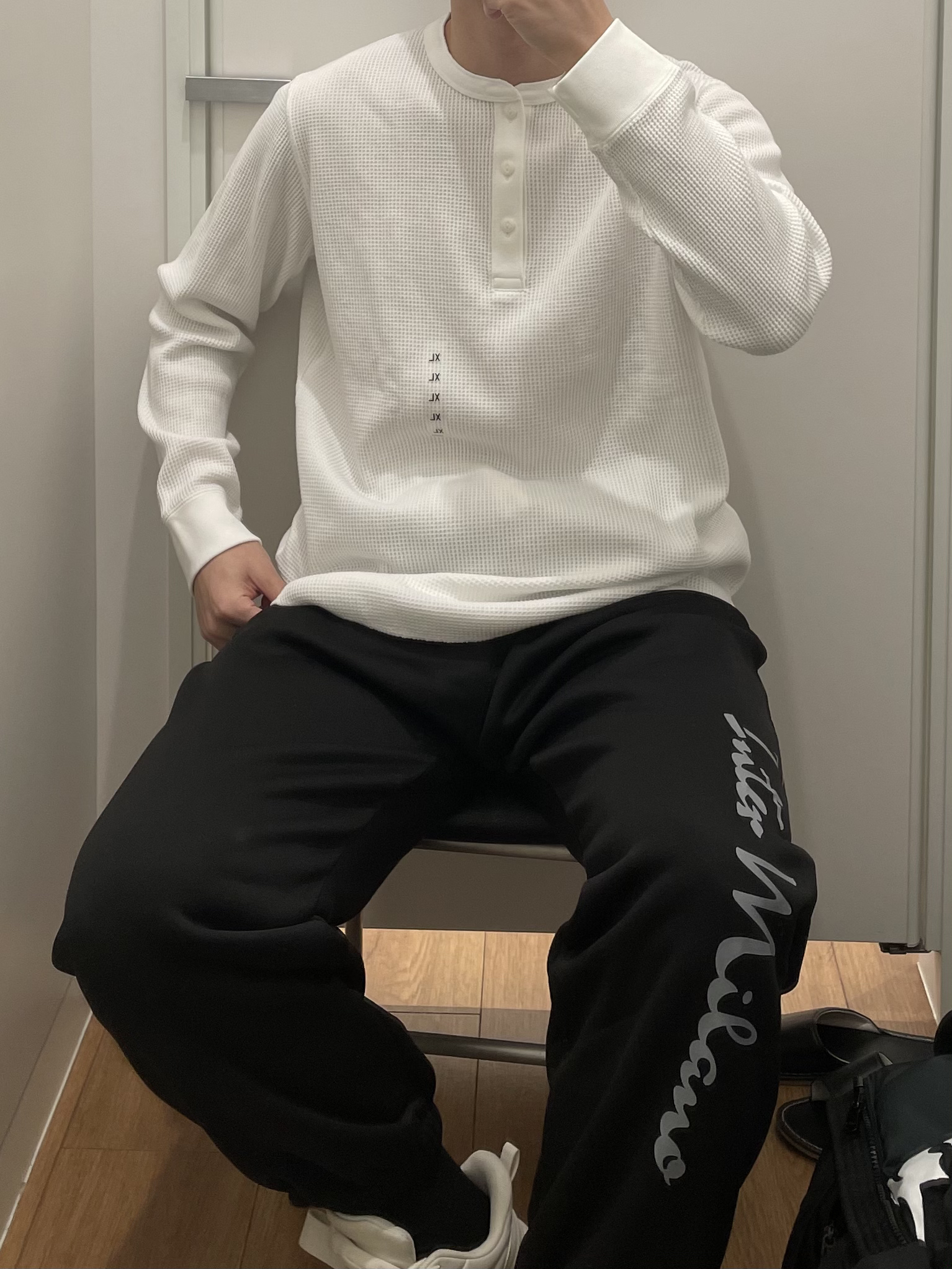 冬天太冷嗯啦!必须要有一条好穿又好看的休闲加绒裤诶!穿起来也舒服 平时运动散步是真的可以诶‼️ 字母印花边设计 添加了更多感觉哈哈! 搭配优衣库华夫格白色卫衣 只能说好看的! #宝藏运动裤 #百搭卫裤分享 #冬季加绒裤子 #冬季男生OOTD #分享你的秋冬卫裤