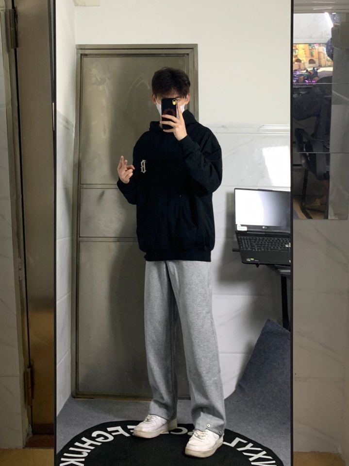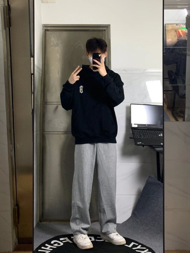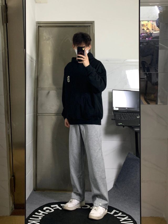 上衣选择一件潮酷设计风格连帽卫衣 胸前简约高级感印花Logo 版型上身效果真的很帅很舒适~ 搭配上这款灰色休闲直筒裤👖 版型设计宽松不臃肿,重磅面料上身透气舒适✨ 垂感十足,色系百搭耐看,休闲运动穿的都合适 鞋子选择了百搭款板鞋Af1 这一身搭配下来,少年感十足!