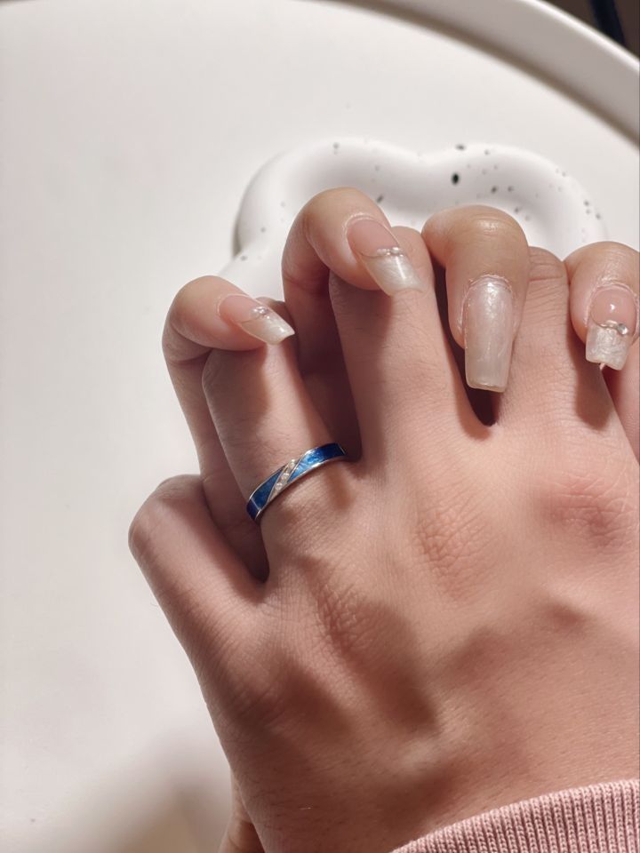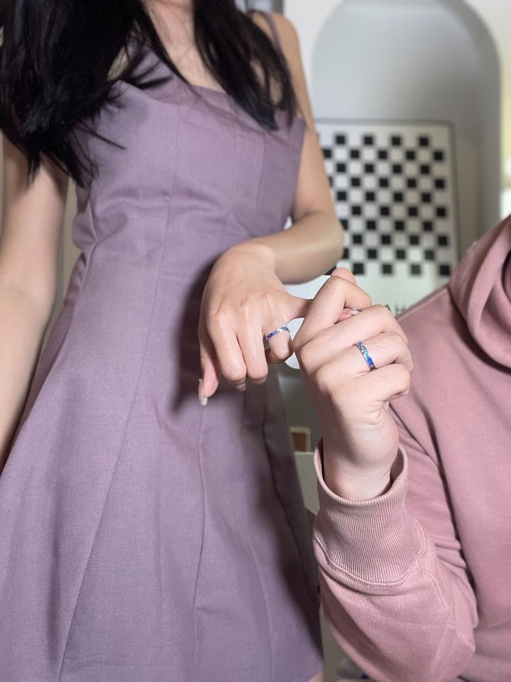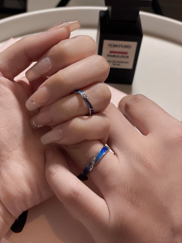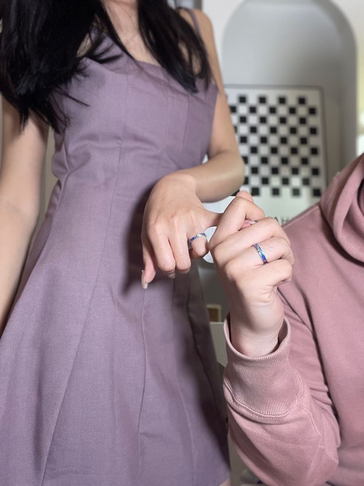 情侣装不一定非要一模一样嘛 我的紫色小裙子和他的藕荷色卫衣看起来也蛮搭的呀 今天戴了情侣戒指 蓝色偏光 珐琅的感觉 蓝色星河的设计 宝蓝色很显手白💙 上面还有小碎钻 很闪 520不知道买点什么 可以考虑一下这种小巧精致的情侣对戒 这种小信物实在是太浪漫了 💍:NAME.S #情侣戒指一对 #情侣送礼,主打浪漫 #一个完美的520礼物 #春夏宝藏配饰