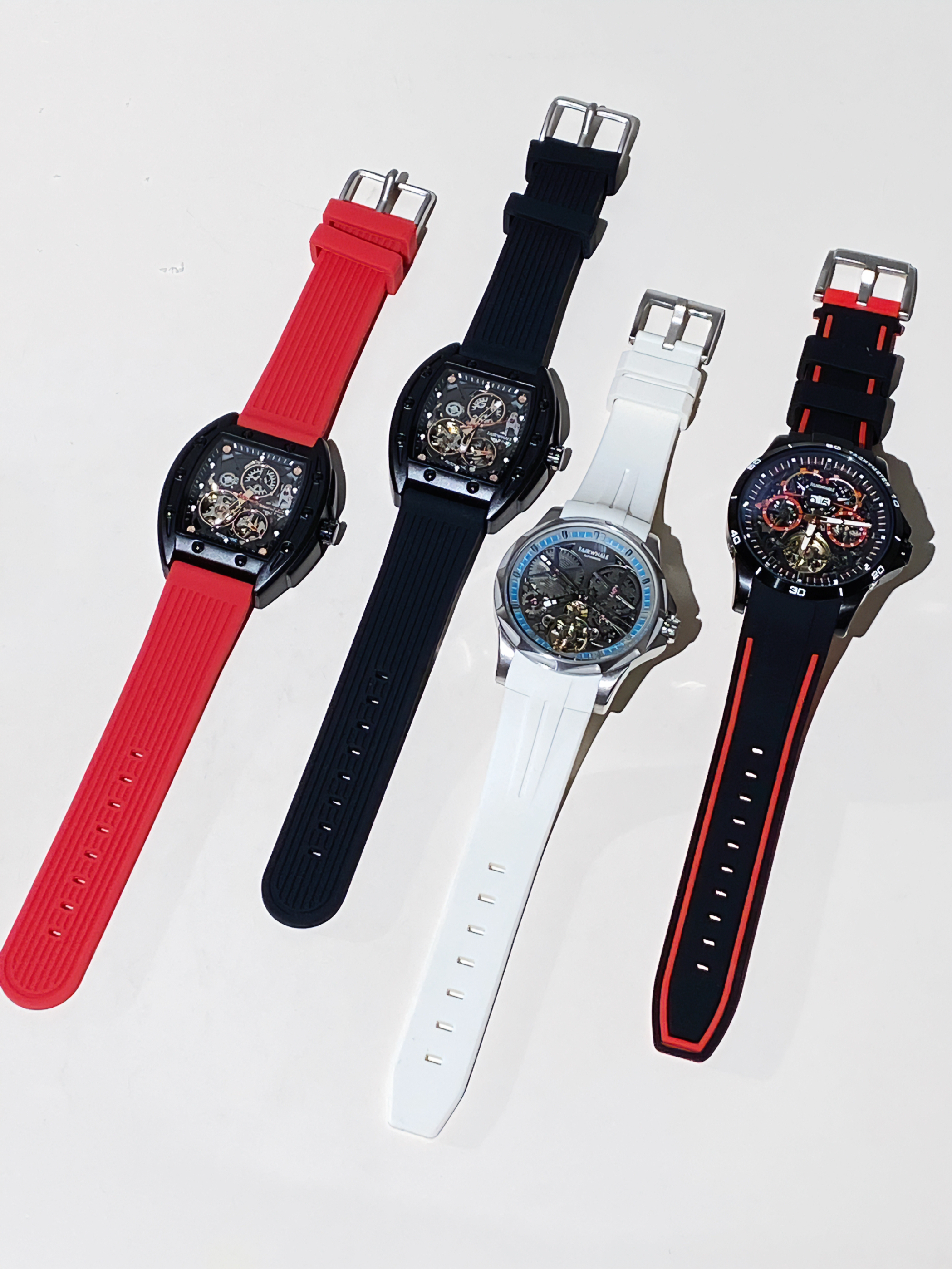 现在的穿搭离不开手表的点缀 马克华菲的四款手表,百搭又耐看 开拓者系列的酒桶型 黑色和红色表带各有各的风格,黑色戴起来给人一种绅士又神秘的感觉;红色戴起来给人一种酷酷的感觉。 开拓者系列的圆形 机械风满满,白色系戴起来给人一种干净清爽的错觉;黑红色系戴起来给人一种有个性有气场的感觉。 硅胶表带,舒适又透气 日常通勤或者休闲都能驾驭~