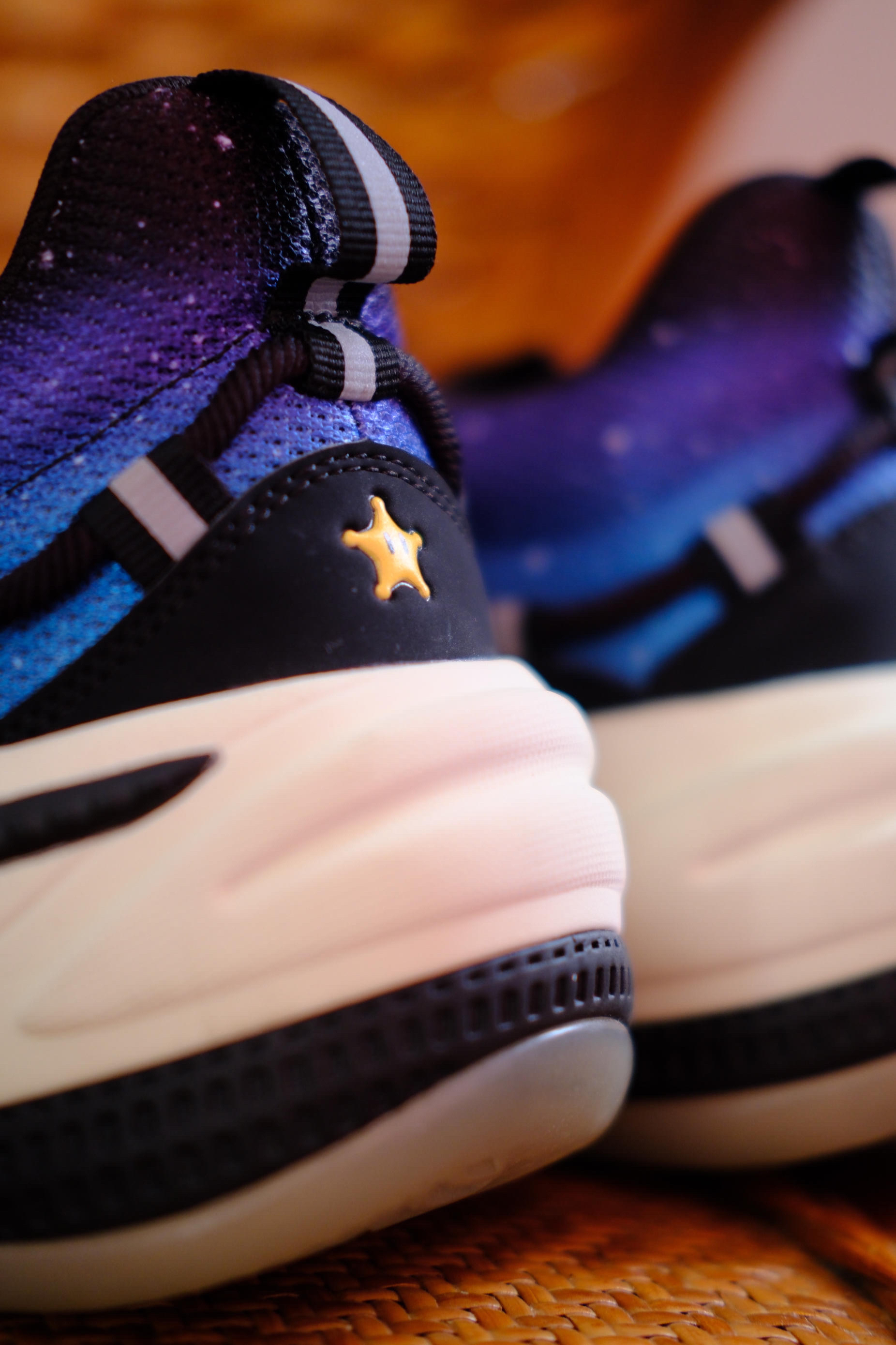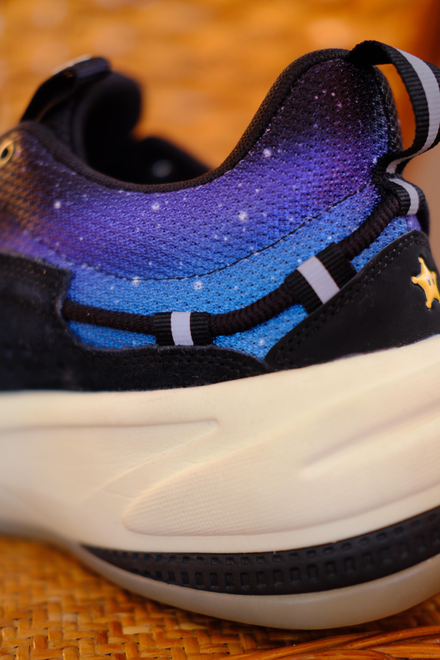 作为 Rap 界教导主任的第一双个人签名鞋,RS -- Dreamer 的潮流价值远大于实战价值,这一点也可能是与任天堂联名的契机。 这款联名配色,在中底与外地都采用夜光材质,鞋身设有类似动态飞线的处理,鞋尾处设有经典的马里奥星星💫,此外马里奥的游戏形象也印在鞋垫区域,彰显联名身份。