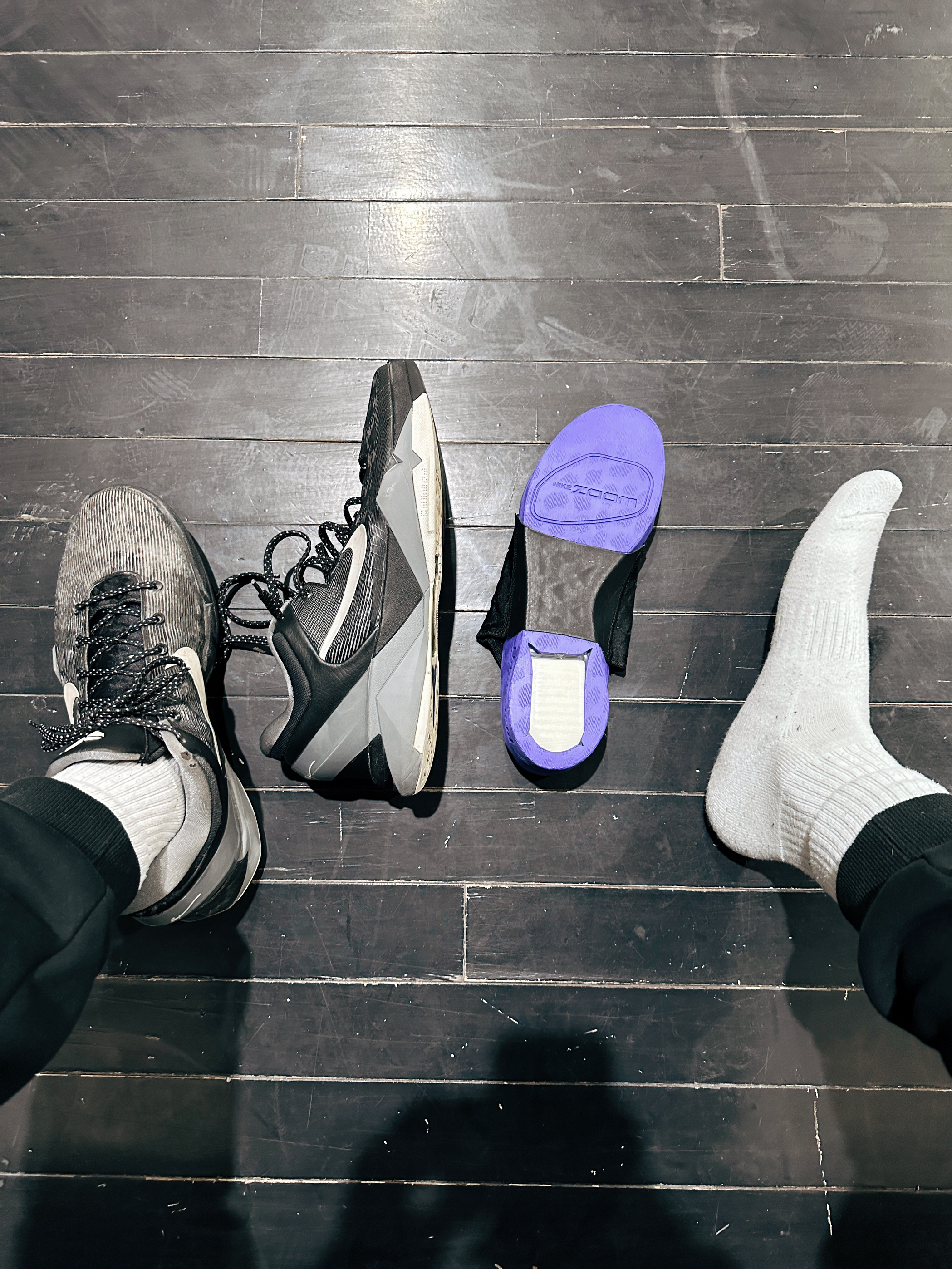 鞋脚一体性方面:非常流畅,尤其是前掌的 ZOOM 气垫摆放的位置贴近脚底,所以每跑一步都感觉是弹出去的,给你提供源源不断的助力效果,非常爽,像跑车一样,带有推背感!就是有点沉,满场跑下来以后会觉得有些脚酸,瑕不掩瑜吧,依旧值得吹一嘴!