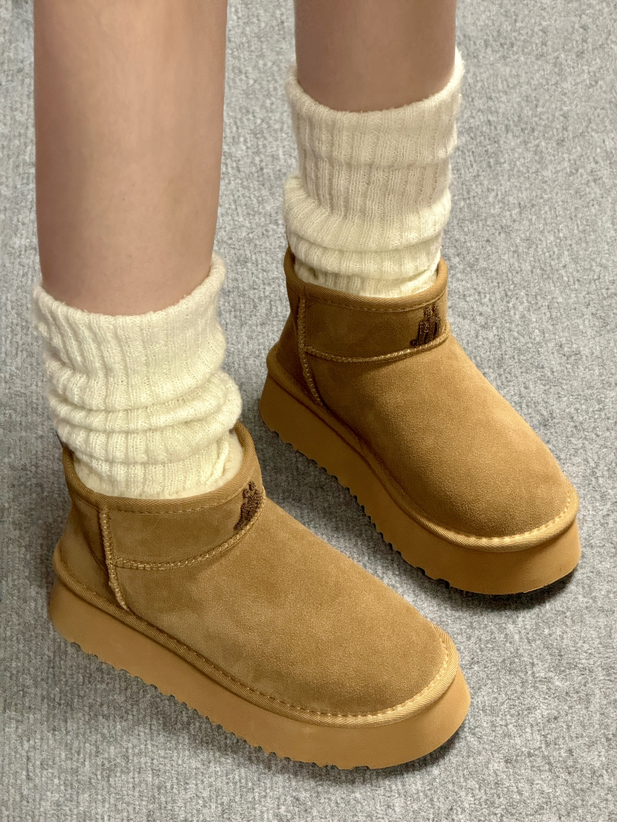 袜套配雪地靴也太好看啦! 上脚一整个被暖住了就是说 棕色尊嘟百搭又耐看~ 保暖又增高5cm 还显jio小! 怕冻脚的姐妹可以冲哦!