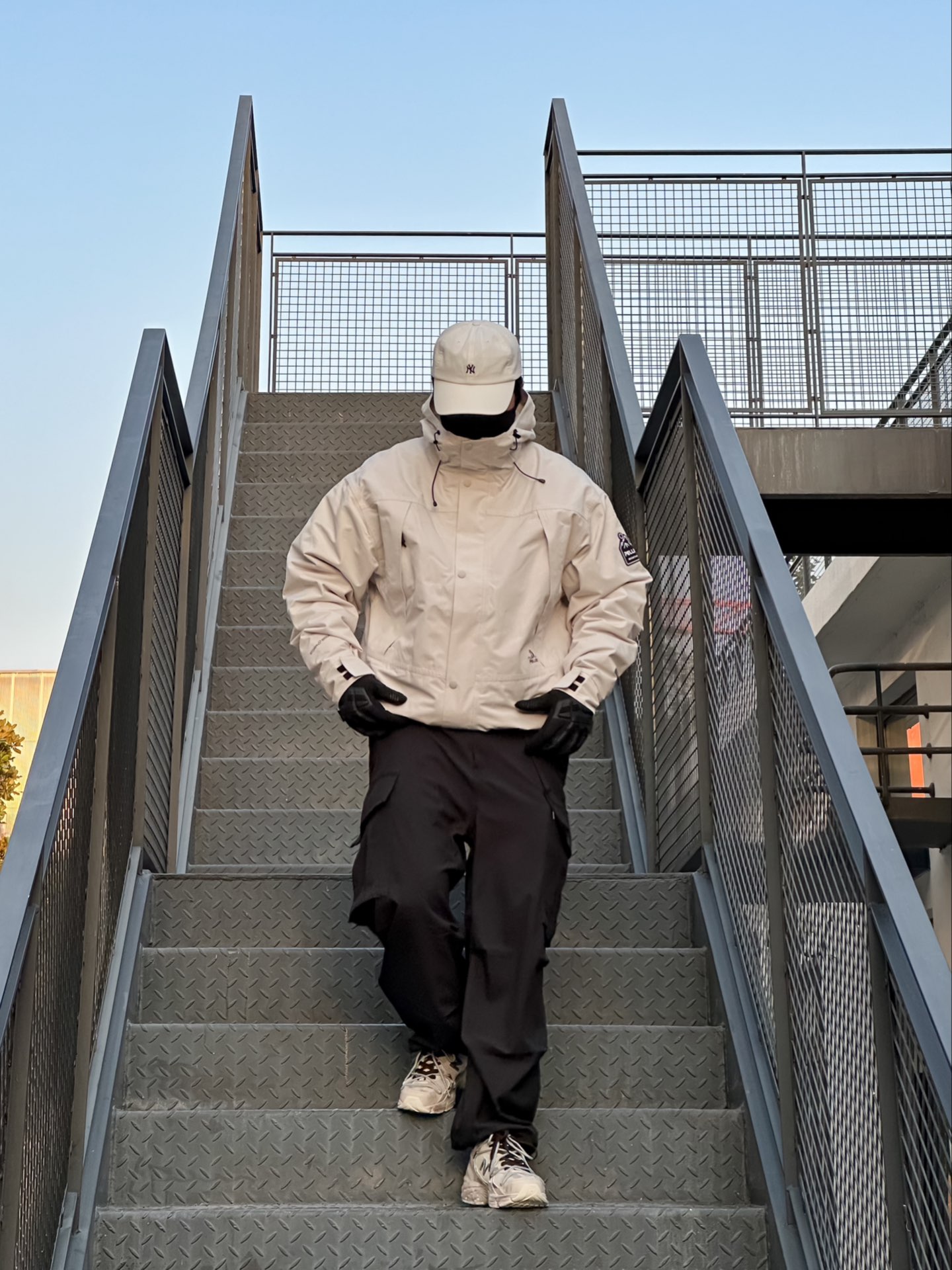 👀一直想入手一件oversize一些的白色冲锋衣,功能性强一些,要有机能感,直到穿上伯希和这件衣服,我觉得正合我意👍🏻 ✨我很喜欢这件衣服的可收口下摆,抽绳一拉秒变短宽面包服版型,抽绳一放就是一件帅气的外套夹克🧥 🌟另我惊喜的是这件三合一冲锋衣的内胆居然是羽绒的,而且是鹅绒🪶,不仅比摇粒绒内胆保暖加倍🔥,它的蓬松度还可以把衣服撑起来显得身材更壮一些🫡 👟达芬奇定制“风暴来袭”NB530,经过...