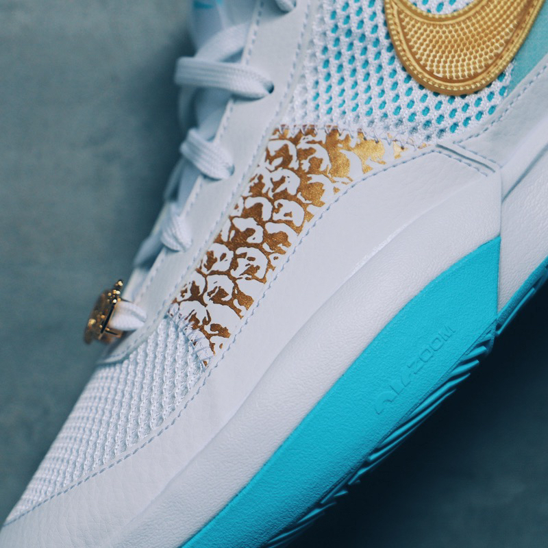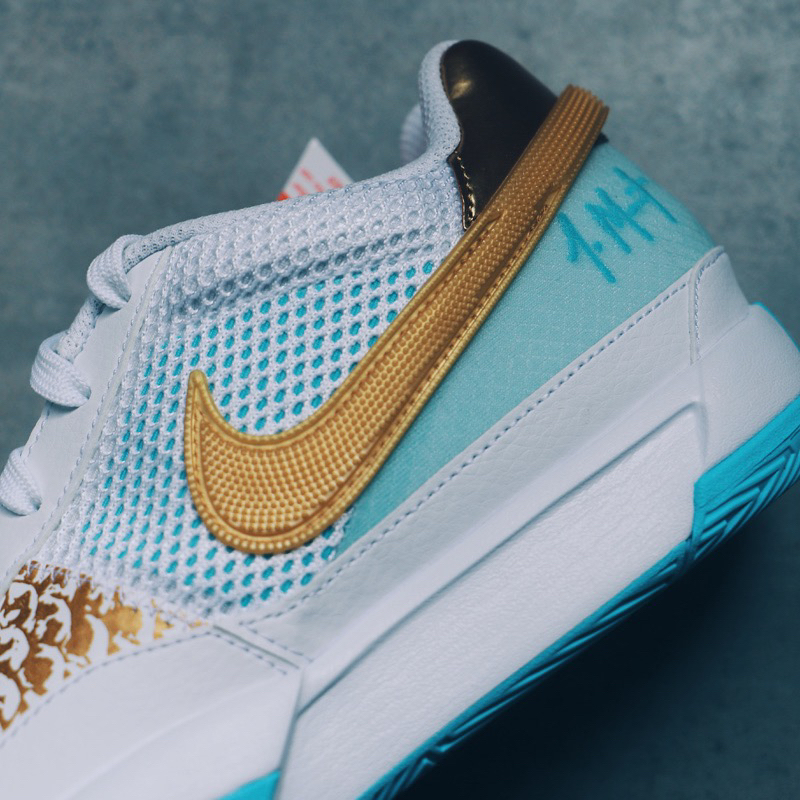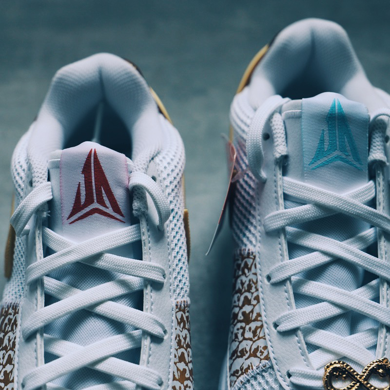本命年买一双属于自己喜欢CNY 鞋款,莫兰特1代龙年这个配色还是蛮吸引眼球的。整体鞋身以干净的白天蓝色为主,搭配金色SWOOSH和似龙鳞图案的点缀。鞋面采用网布和皮革材质打造,透气性不错。鞋带处带有8字的小金龙鞋扣栩栩如生。在鞋舌和后跟处配有鸳鸯色莫兰特LOGO和球衣号码,细节满满。在鞋垫上印有“一条龙的中文字体”。总体来说,主要是认为这个配色还挺好看,且正好今年是自己的本命年,所以果断也就入手了...