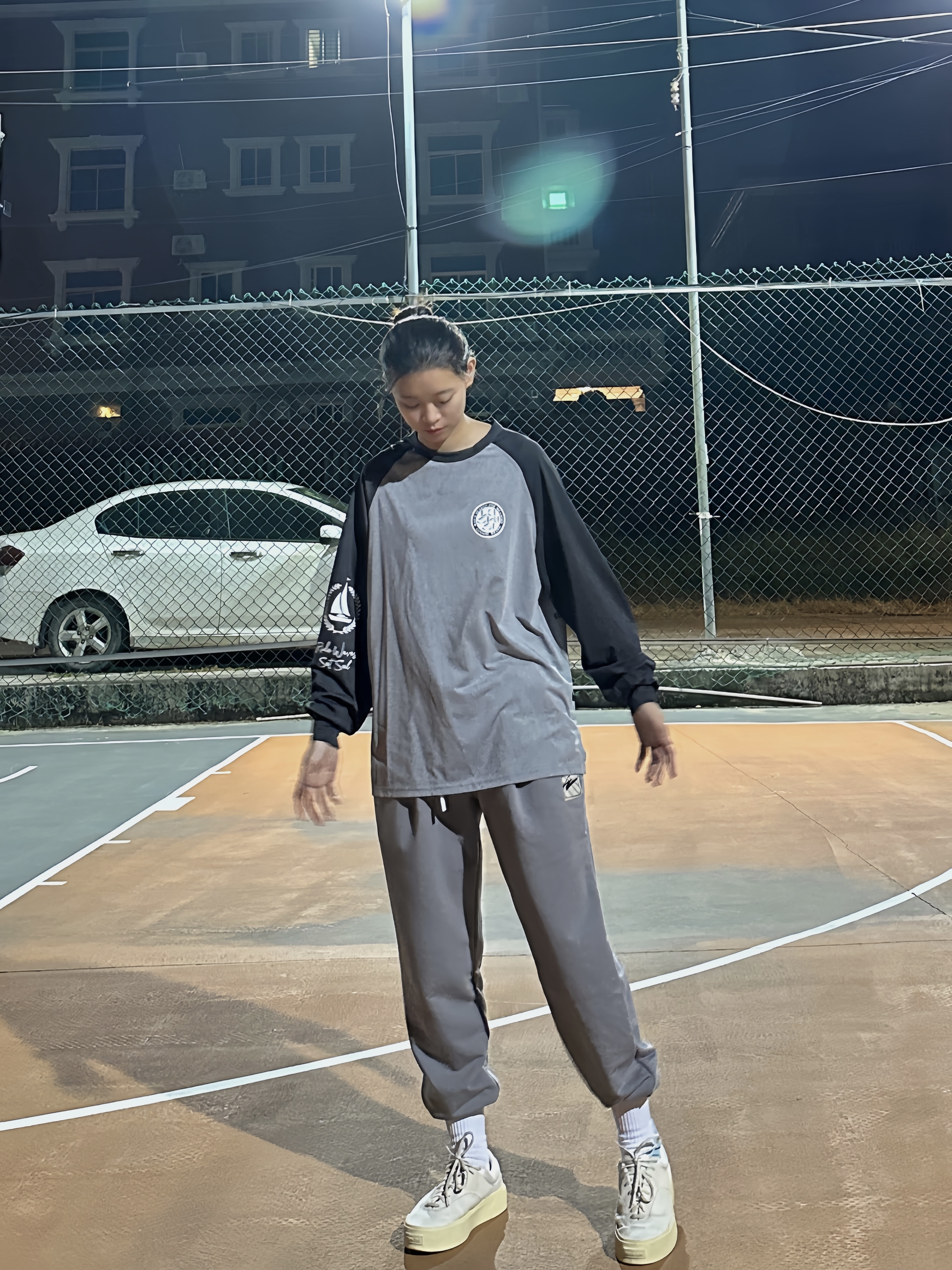 今天分享一套篮球女孩穿搭~ - 👔:lushisi 深灰色的投篮服真滴很好看 面料舒服 速干滑滑的 很透气 👖: 有志者UZIS ▪️下身穿的是传志卫裤 裤子已经是我入手的第二条😎 这次入了新的颜色深灰色 卫裤真的百搭又好看 束脚设计搭配扎袜 妥妥的少林寺穿搭 非常适合日常休闲和运动健身✨ -