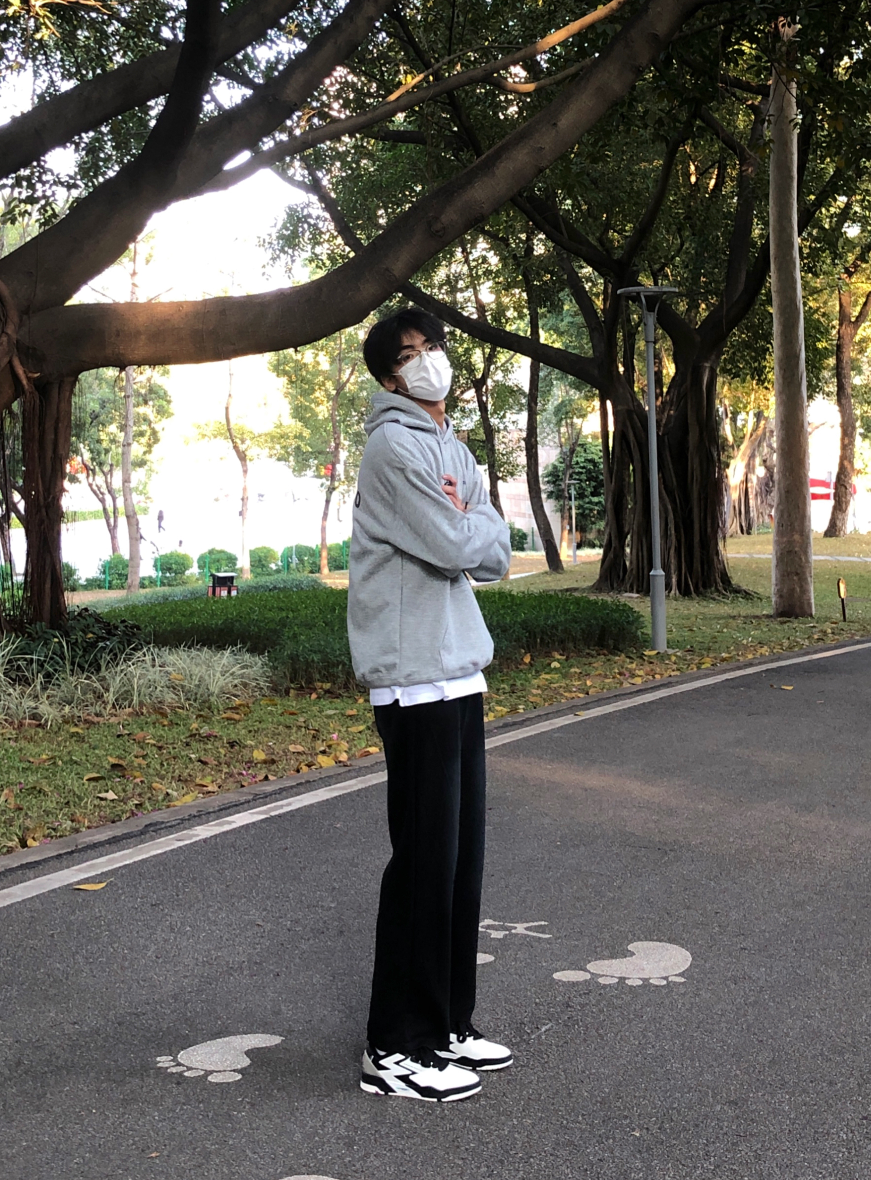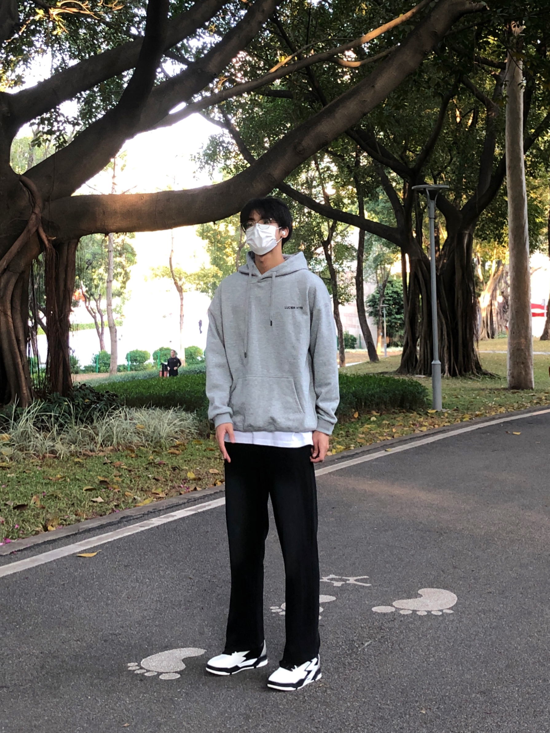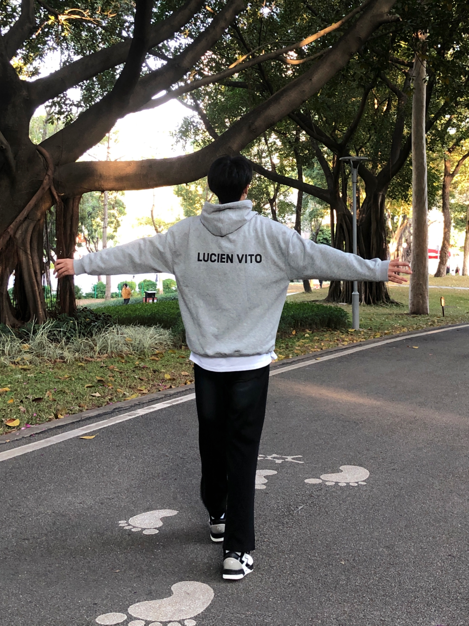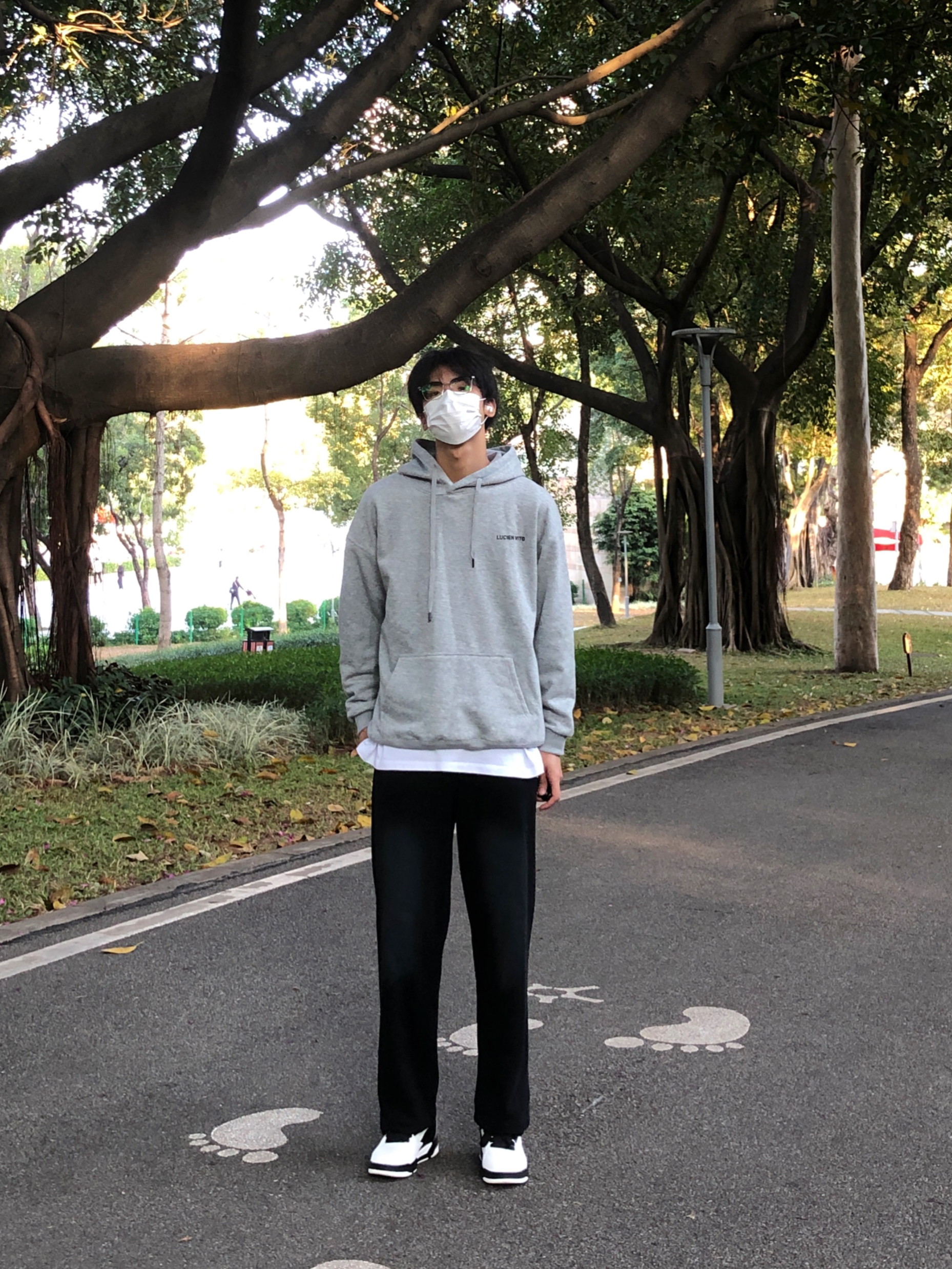 hi~这里是魏不饱Win 今日份分享来啦~ 👔上身灰色字母卫衣 简约大方的字母印花百搭干净 内里有加绒秋冬穿也不会冷 👖搭配的是黑色休闲裤 简约百搭 👟上脚361黑白板鞋 big3侧边有大3的logo 上脚舒适穿搭属性也很好 谢谢你的喜欢💕