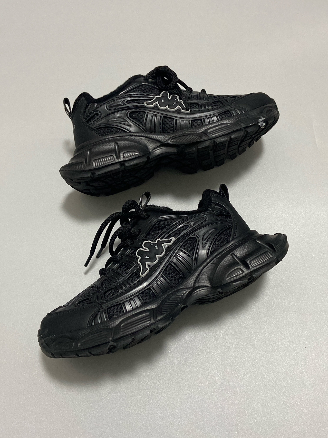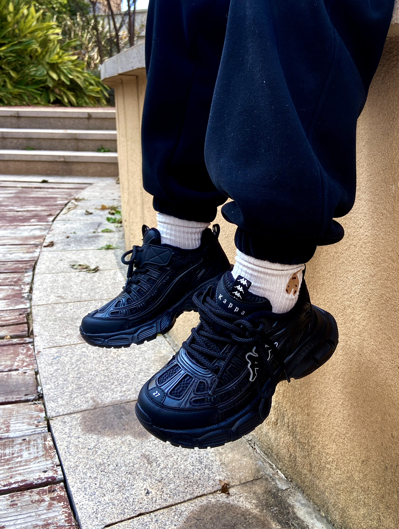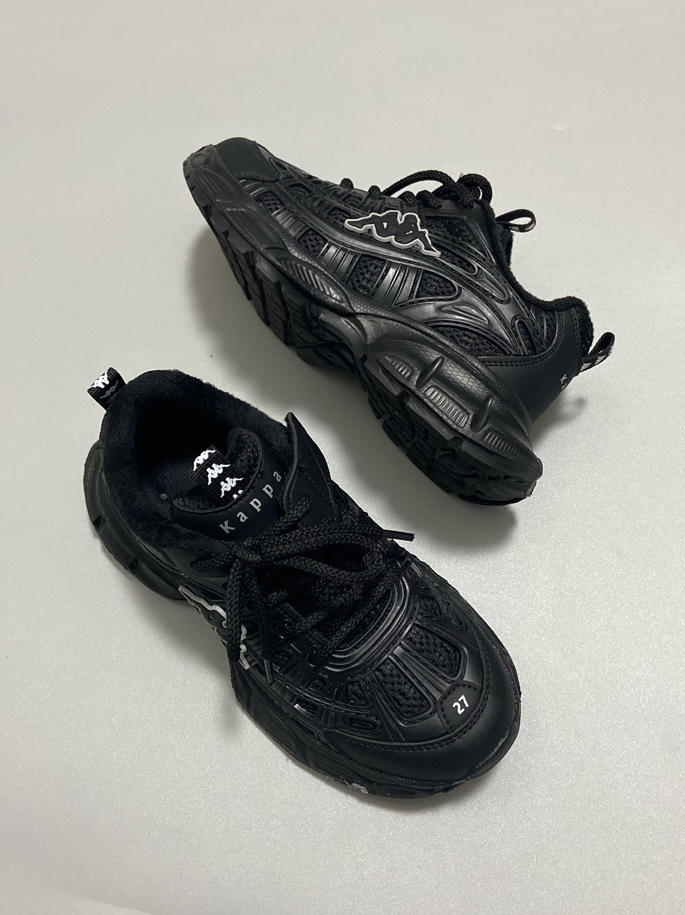 👟(@KAPPA KIDS) - 终于安排上了 ✌ 女儿心心相念的老爹鞋 纠结很久,她选择了全黑 ⚫ 鞋一到,她是对的 ^_^ - 内里是有加绒的,冬天暖和够够的 😁 全黑百搭,有点白点缀让整体不显单调 皮质鞋面,手感柔软好打理 ✅ 魔术贴和鞋带的设计,穿脱巨方便 👍 - 鞋子很轻便,上脚舒适不累 jio 尺码正常不偏码,内有加绒穿的刚刚好 ~ 如果袜子稍厚,建议拿大一码 !✅