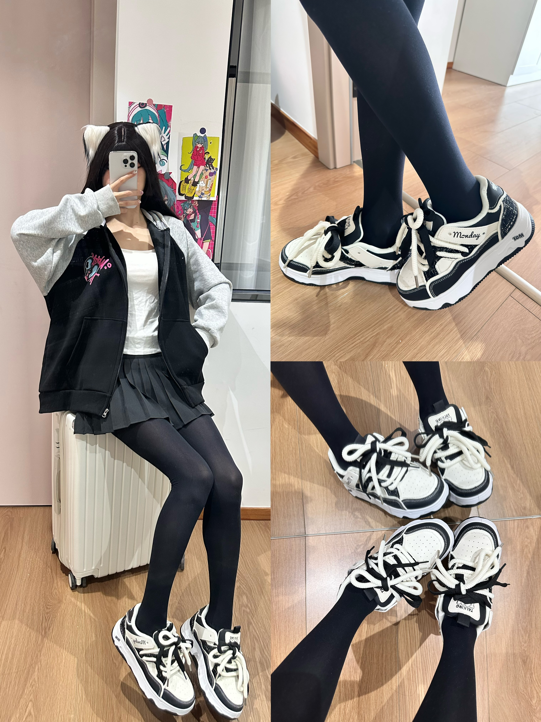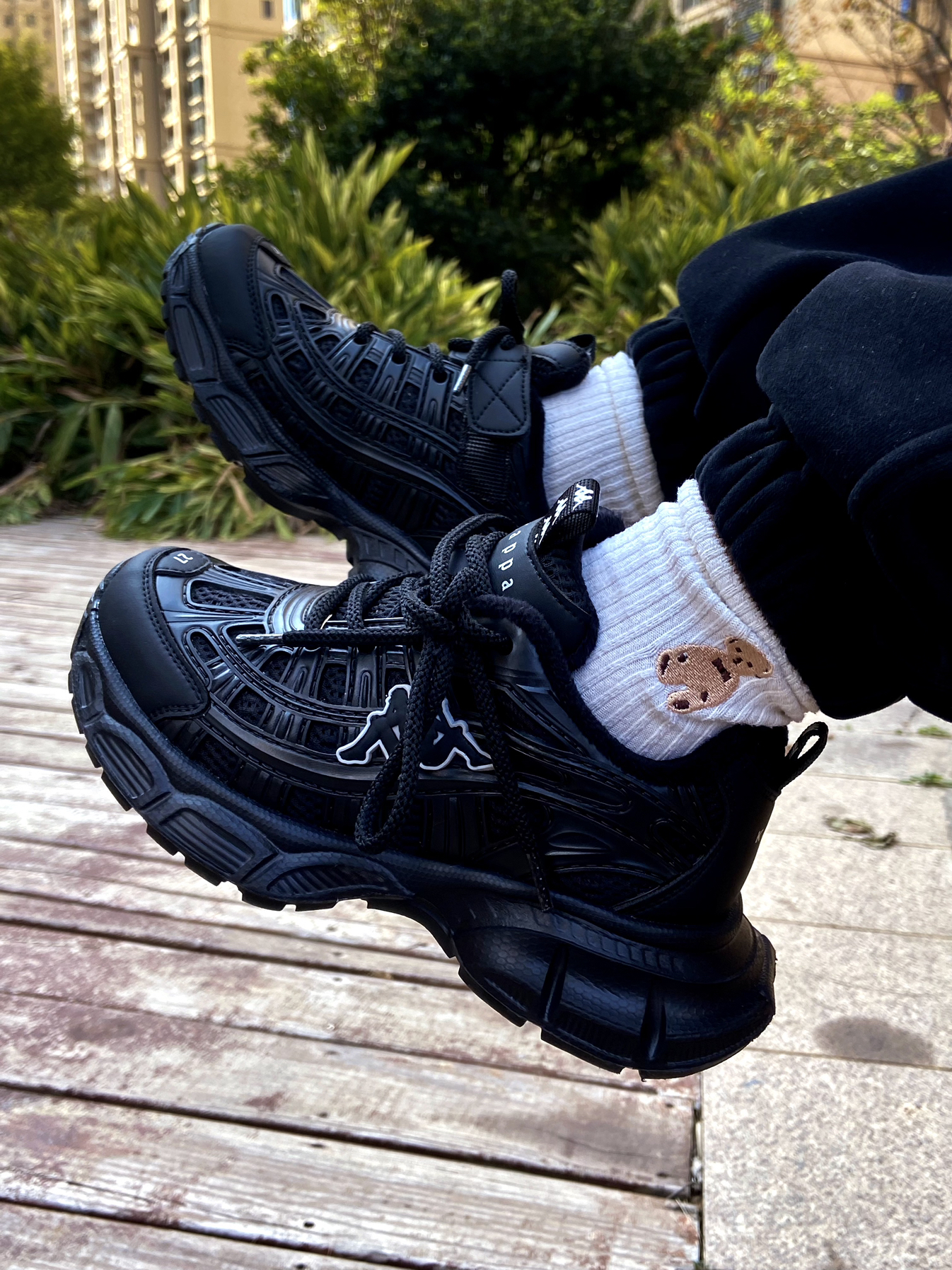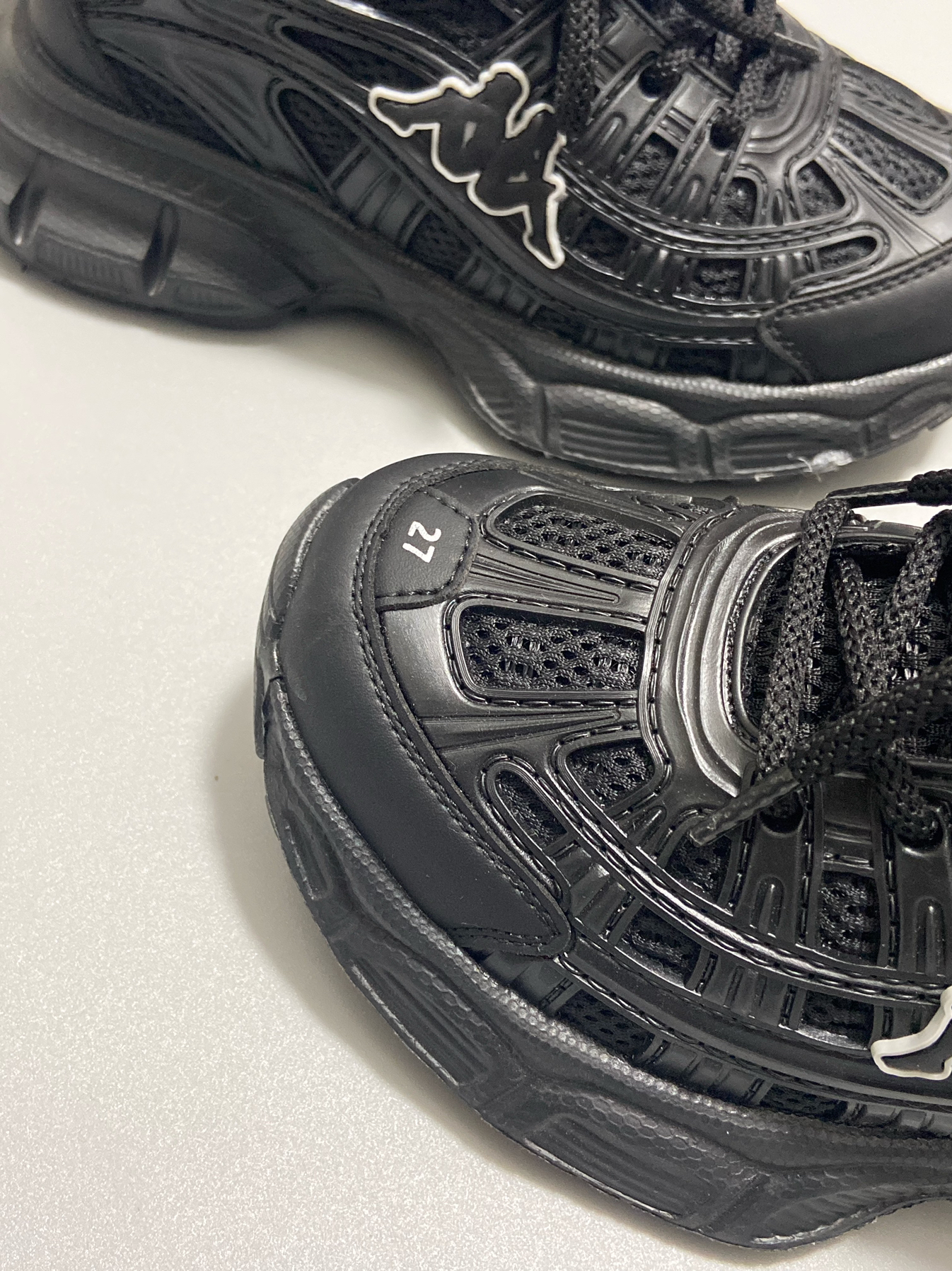👟(@KAPPA KIDS) - 终于安排上了 ✌ 女儿心心相念的老爹鞋 纠结很久,她选择了全黑 ⚫ 鞋一到,她是对的 ^_^ - 内里是有加绒的,冬天暖和够够的 😁 全黑百搭,有点白点缀让整体不显单调 皮质鞋面,手感柔软好打理 ✅ 魔术贴和鞋带的设计,穿脱巨方便 👍 - 鞋子很轻便,上脚舒适不累 jio 尺码正常不偏码,内有加绒穿的刚刚好 ~ 如果袜子稍厚,建议拿大一码 !✅