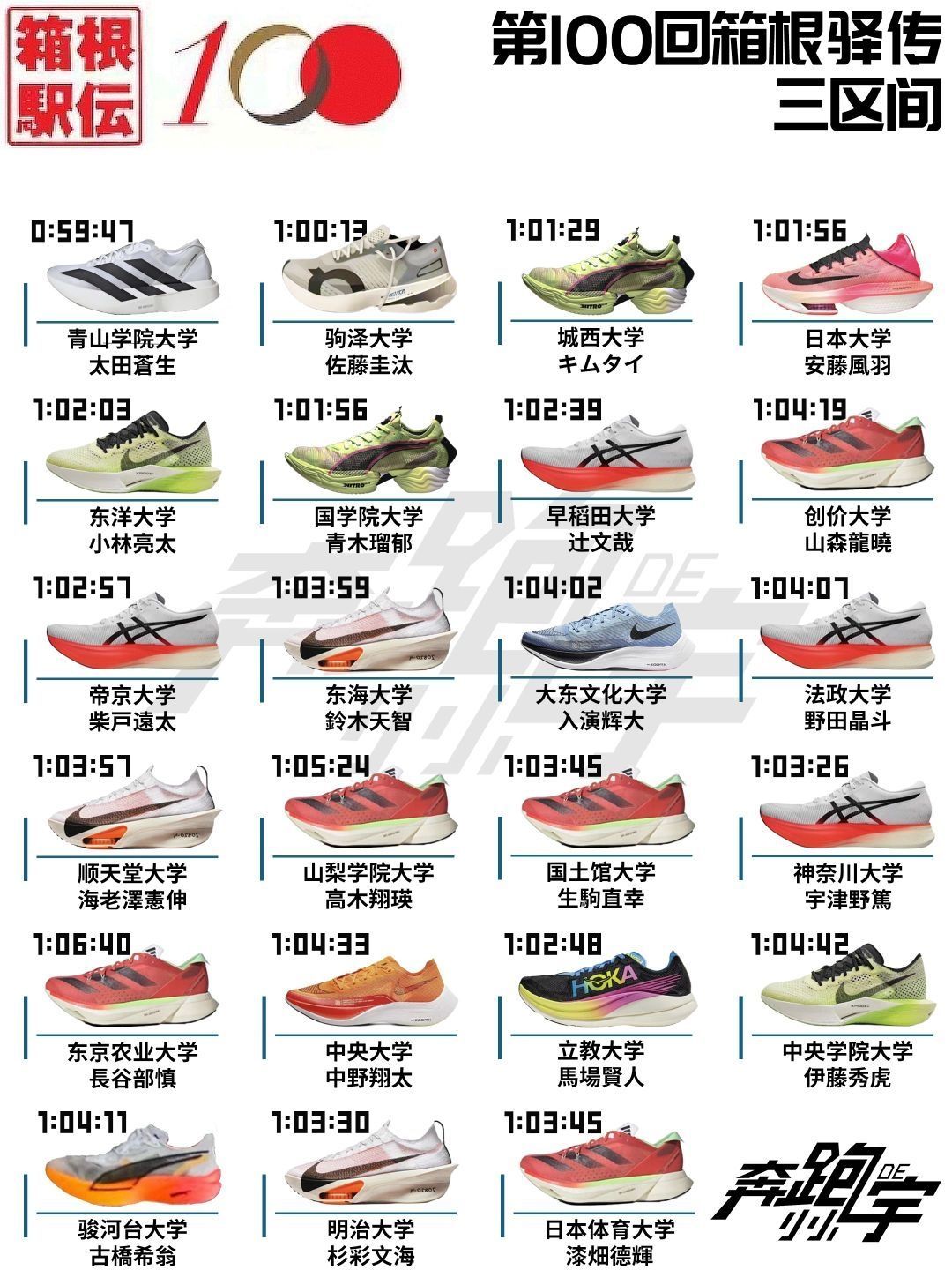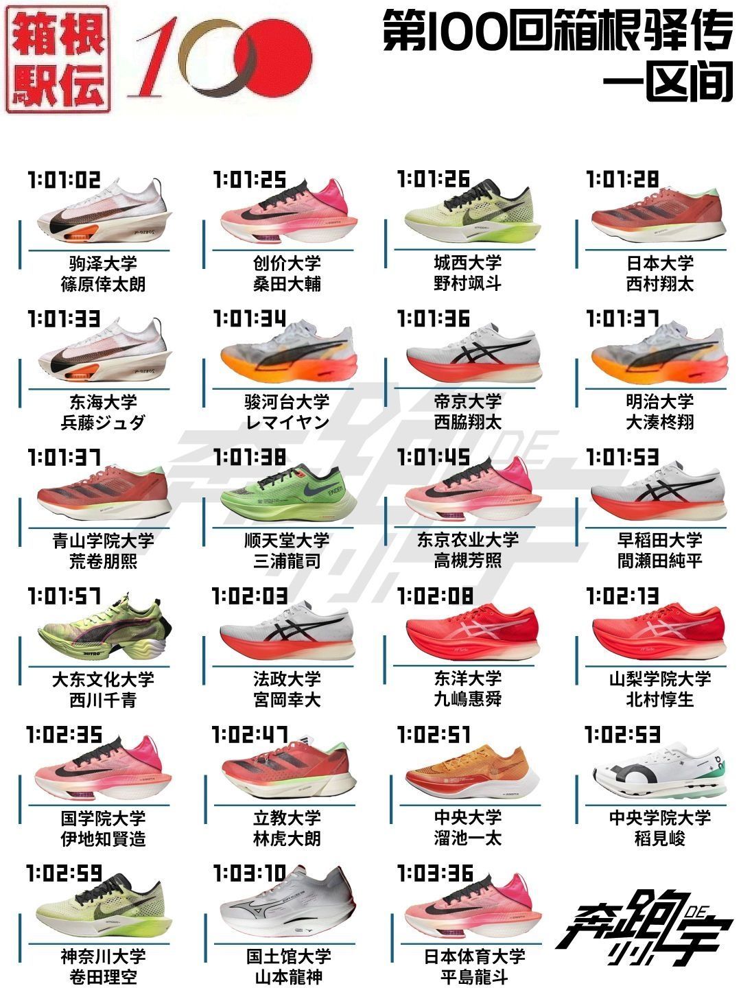 【第100届箱根驿传各区间跑鞋上脚统计】,由用户 奔跑的小小宇 分享,来自辽宁。这是一篇来自识货社区的真实用户分享笔记。