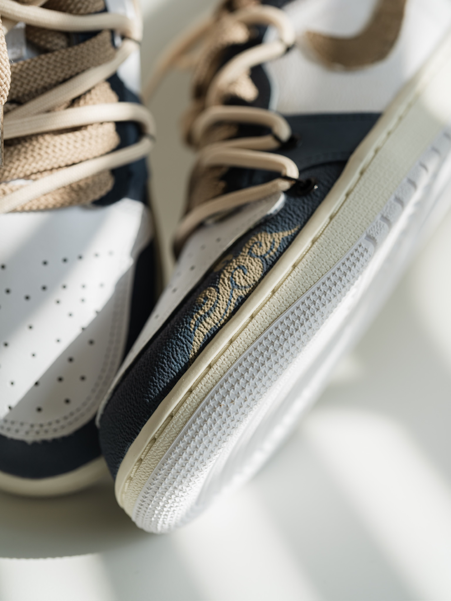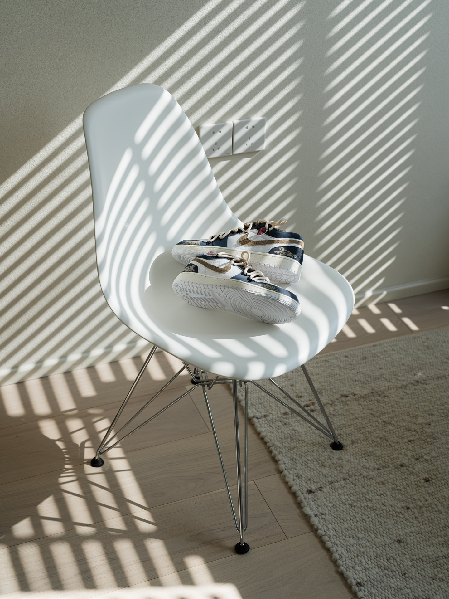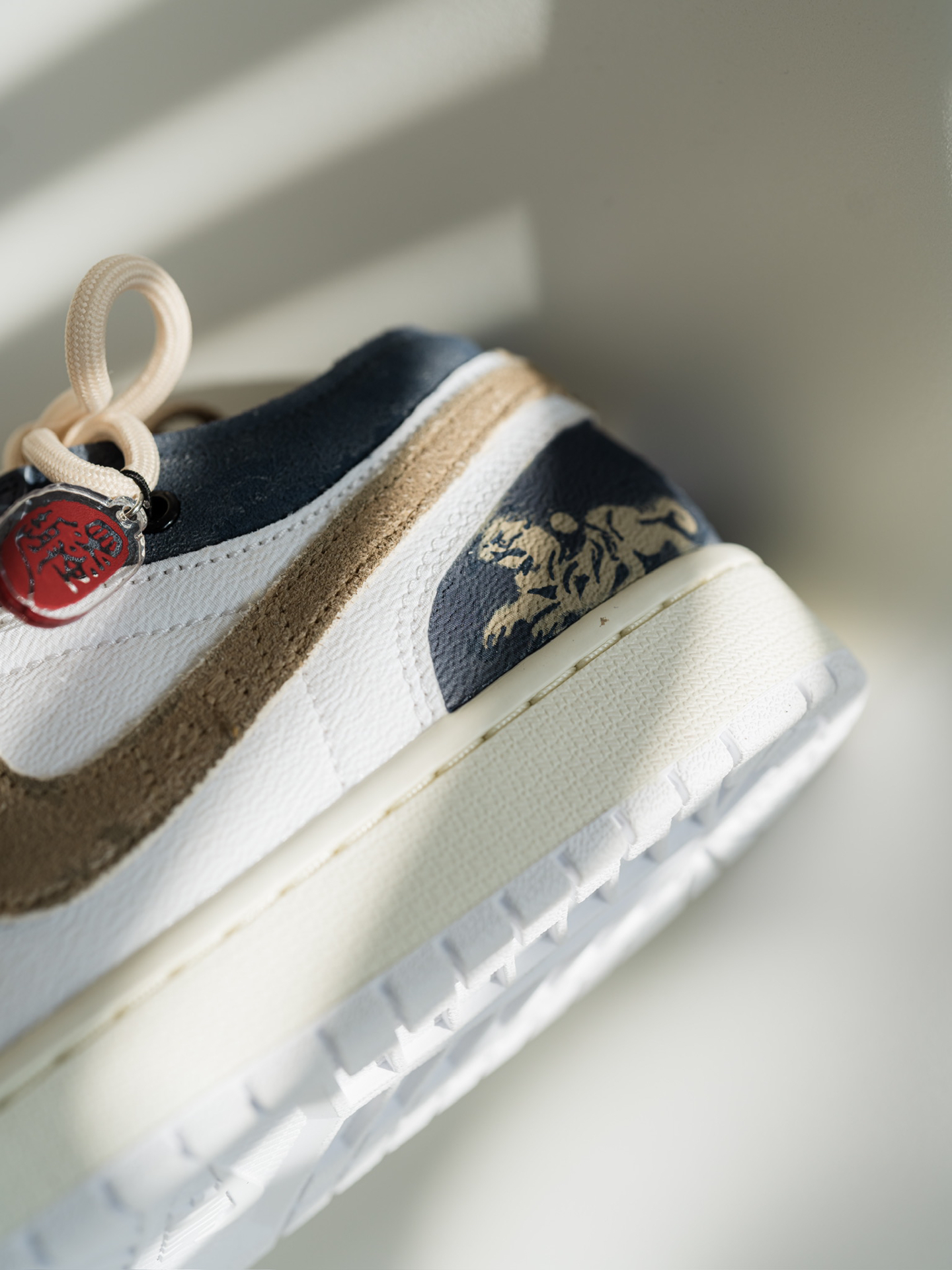 如果不想撞鞋又希望球鞋小众富有细节 是真可以看这双 -来自定制款的AJ1 白虎CNY 整体白蓝色搭配,饱和度低,更加百搭 鞋身是拼接了多种材质,皮质偏硬,纹理的凹凸感更强 亮眼的地方有三处: 暗金色的白虎和祥云印花 同色系双鞋带设计很有解构感 内帮剪切外露 总的来说这双AJ1的设计很有中国风,细节上的点缀也不浮夸,日常搭配也不用太挑,牛仔裤休闲裤轻松搭配,还有一段时间就过年了,新年穿新鞋,选...
