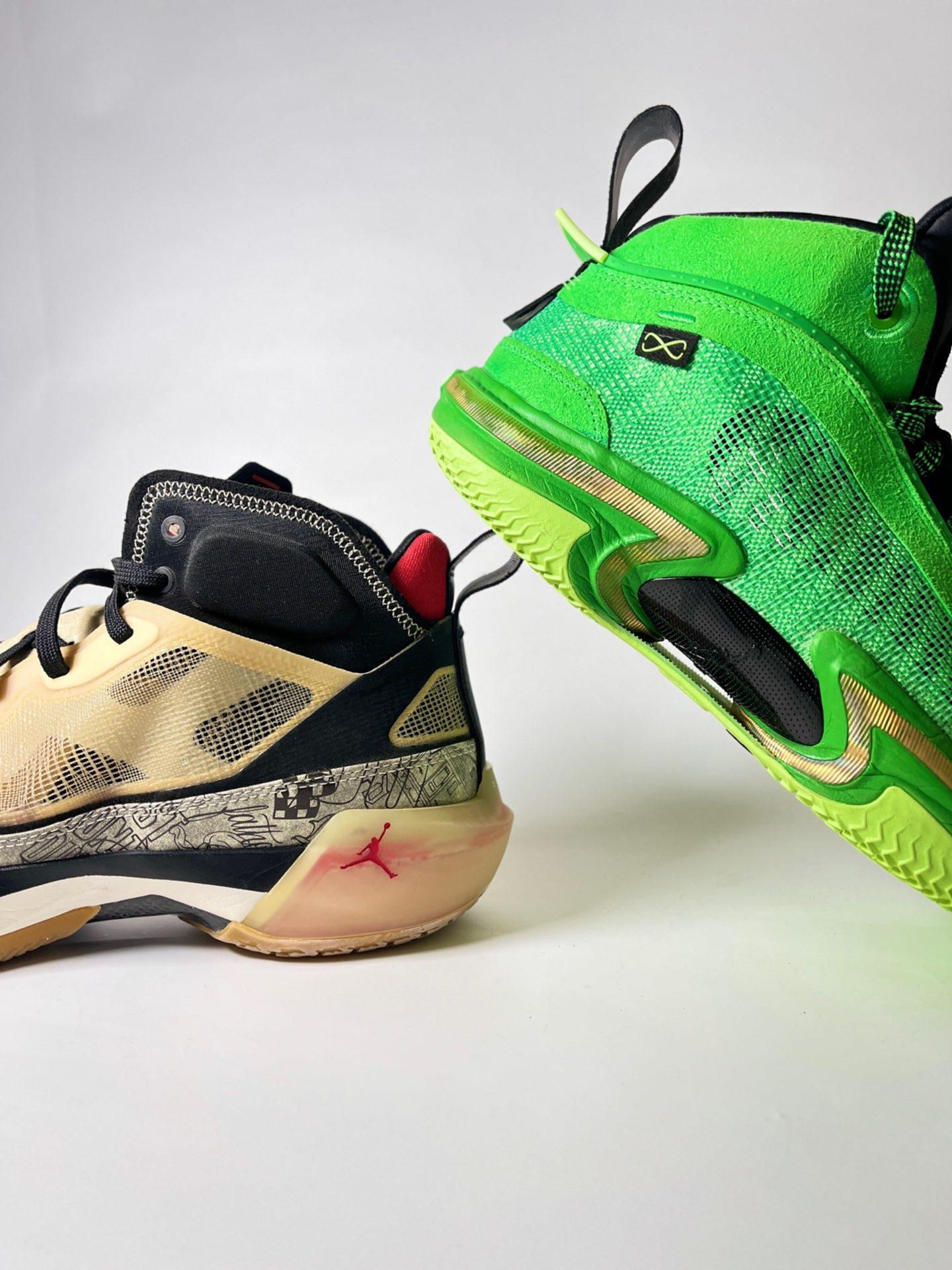 👟球鞋名称:1⃣️Air Jordan 36 PF 2⃣️Air Jordan 37 “Jayson Tatum” 最近也是有听到獭兔的2⃣️代已经来临了,但是自己还没有入,因为这两双依然是我的心头爱!!! AJ36想必我不用多做介绍,爱他的人真的很爱,而不喜欢的人也会疯狂吐槽。延续了34代的镂空中底,并且有着丰富的配置以及还算不错的鞋面强度,整体夸张...