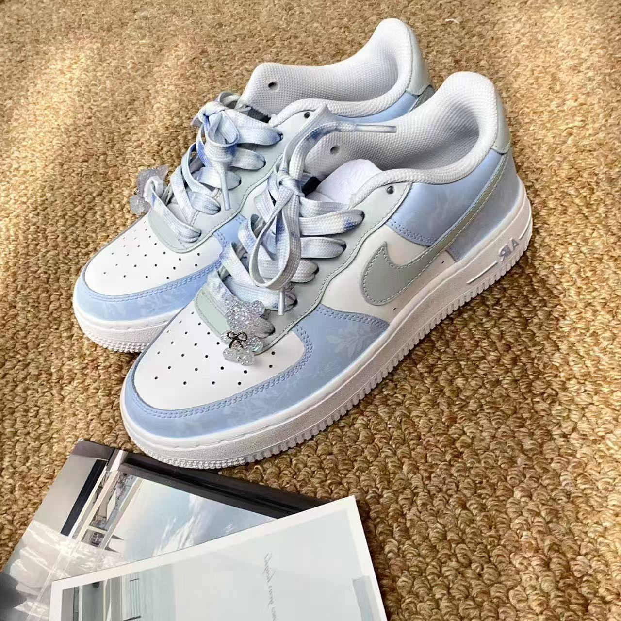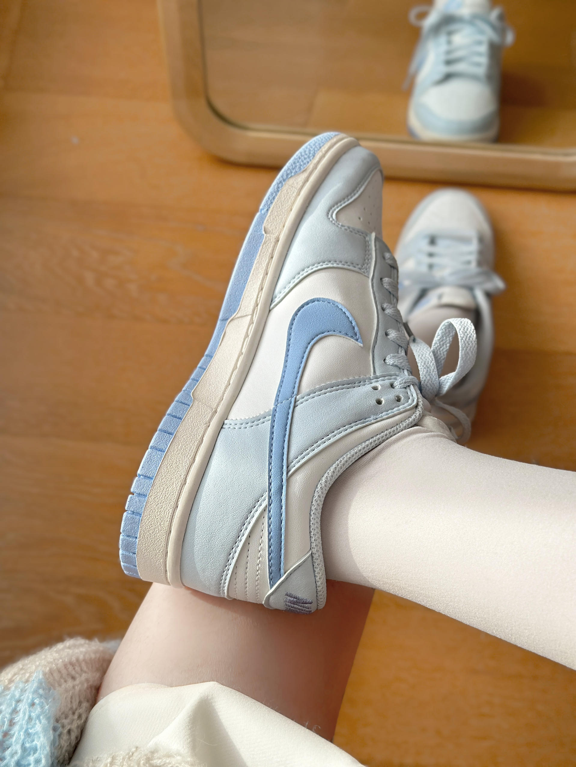 奶呼呼的低饱和白蓝配色 鞋底也是蓝色的 尊滴好嫩呀 个人觉得鞋码正常码即可 这个厚度冬天穿也没问题滴!