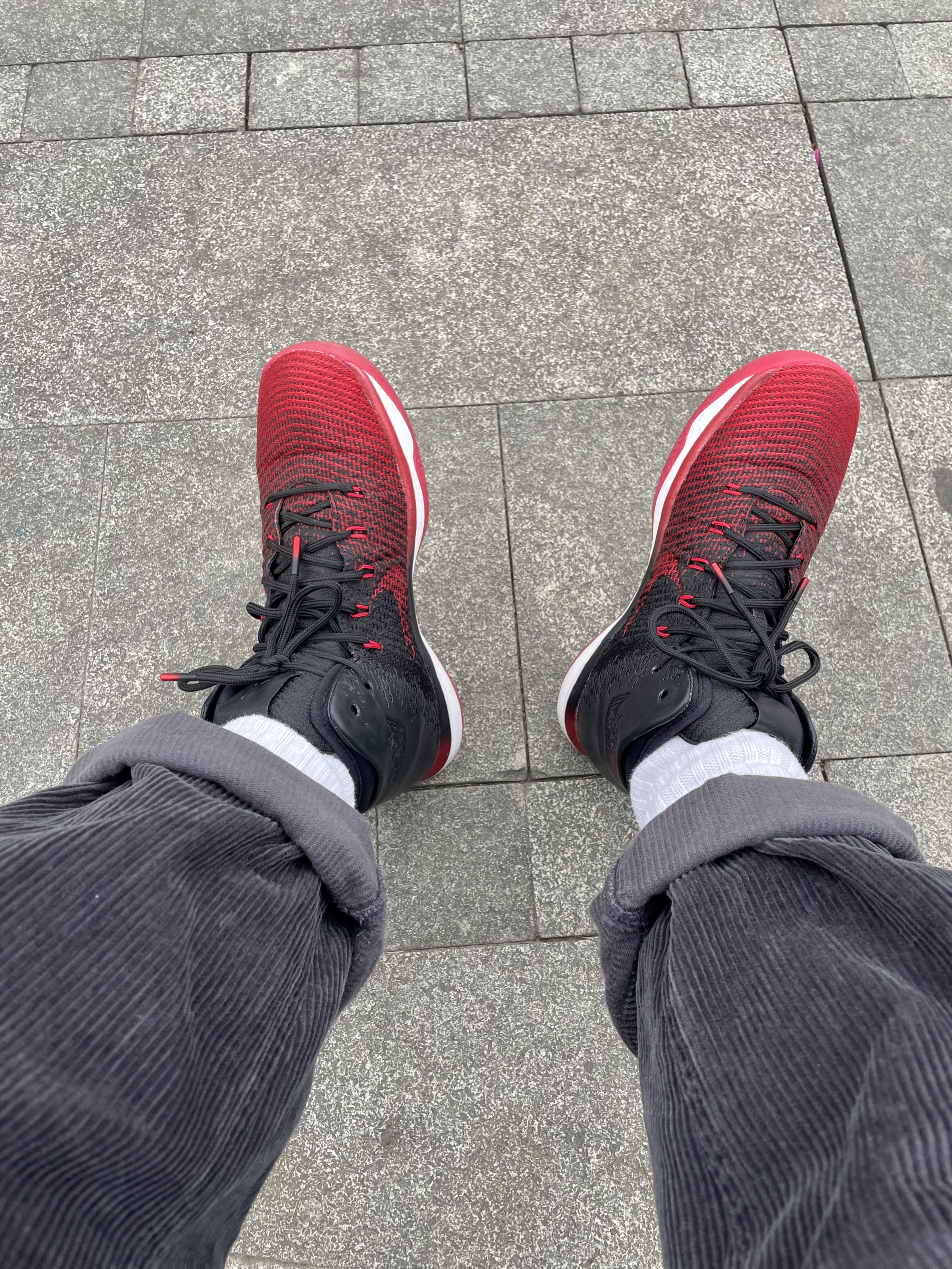 禁穿的配色,aj1 的外形设计灵感, 当年最顶的球鞋配置。 缺点我觉得就是大底略平, 防滑不是很好。 比较适合没有灰的内场。 气垫反馈在奔跑和跳跃是还是很明显的。