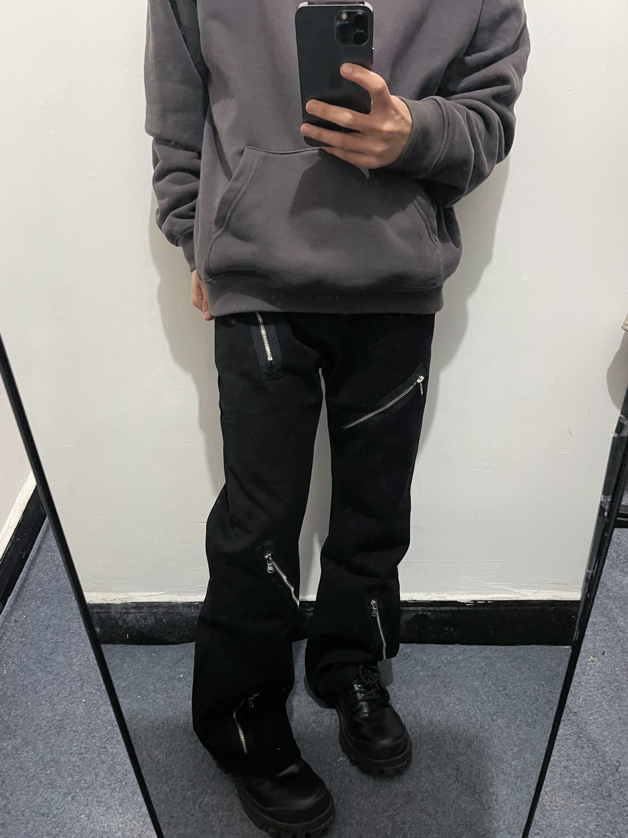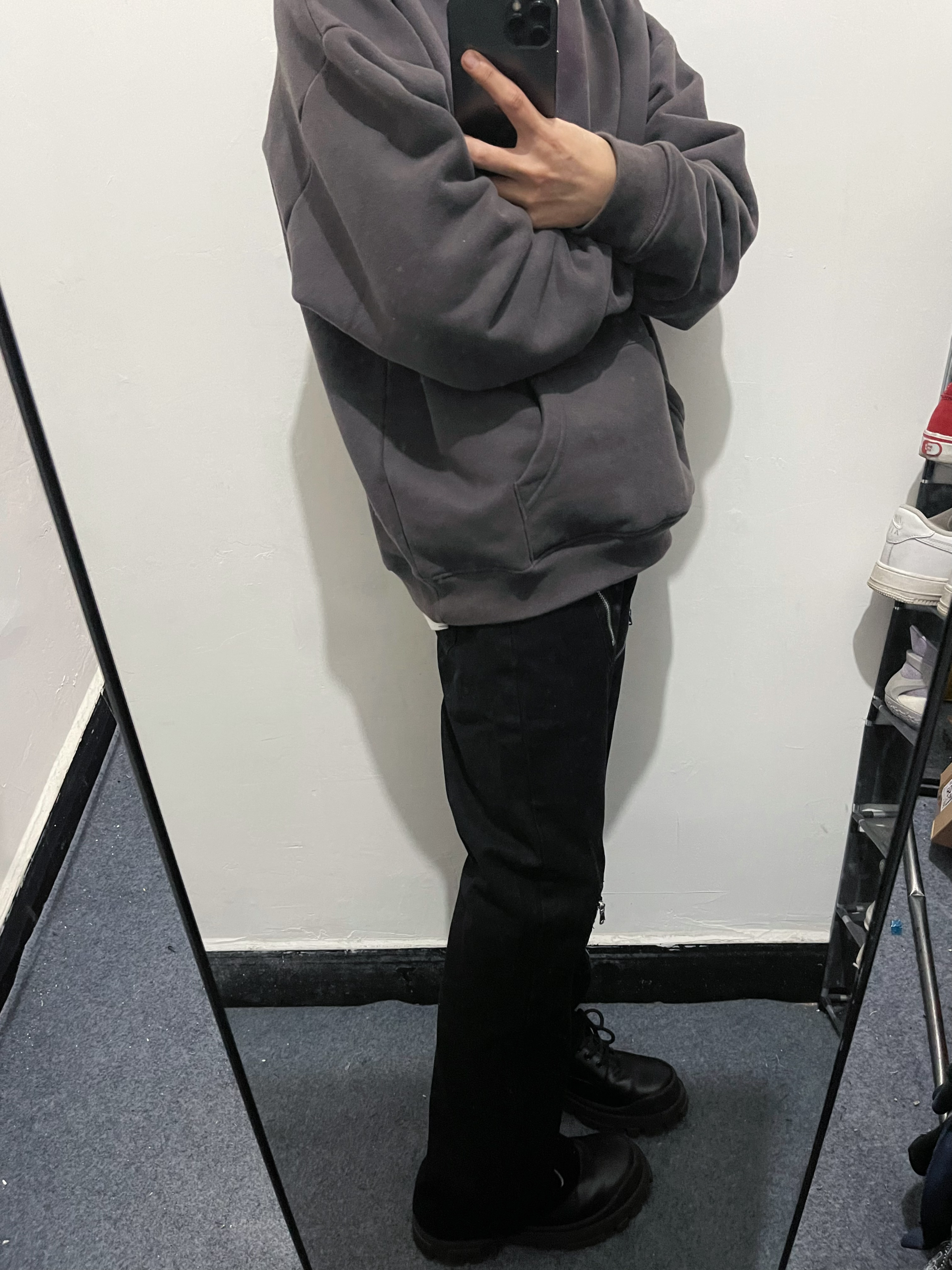 今天上身一件基础款卫衣 下身搭配一条voguoRelay的微喇牛仔裤 裤子版型不错并且使用了ykk拉链,在做工上是下了功夫的,1开的价位也是性价比拉满,真心不错的一款裤子。