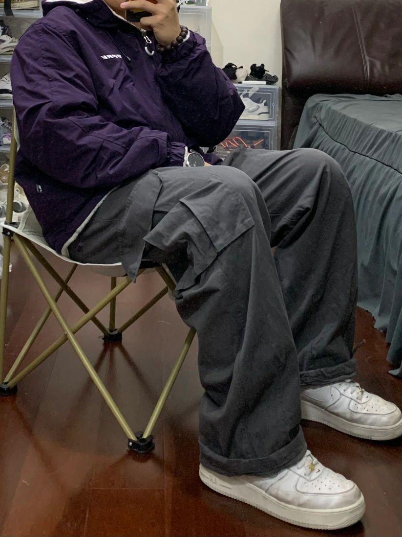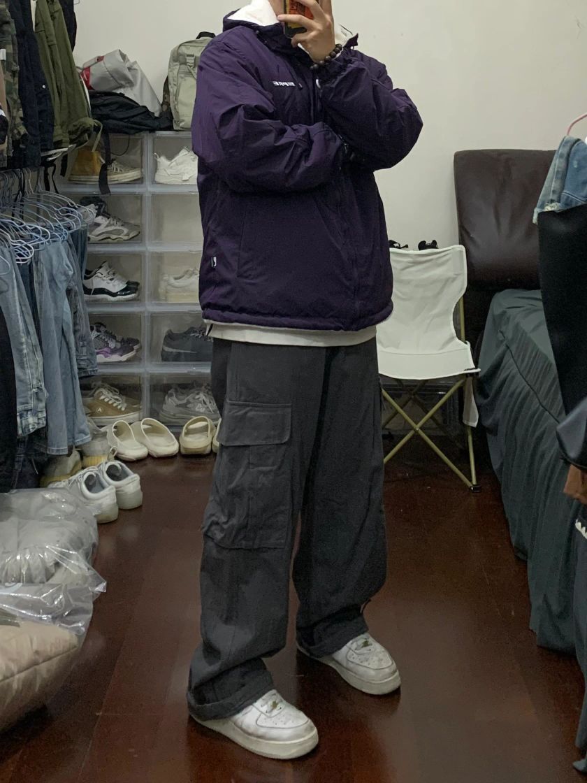 正反两面都可以穿的外套 超级舒服又帅气 搭上浅灰多口袋工装裤 休闲舒服的一套!