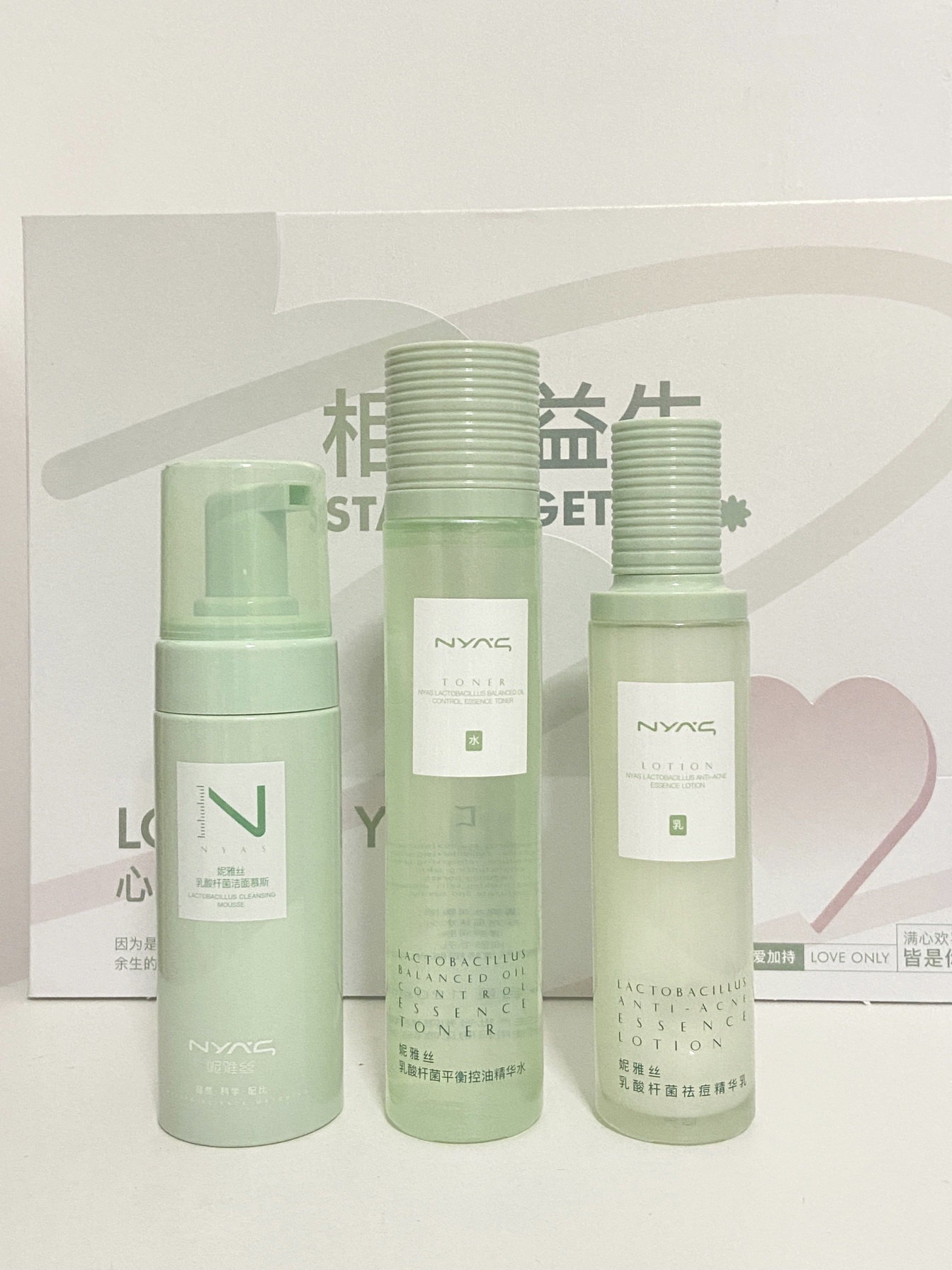 本篇笔记关联了NYAS/妮雅丝 益生菌控油祛痘护肤套装 混油皮油痘皮 水120ml+乳100ml+祛痘精华液30ml等商品,为用户提供真实的使用体验和购买参考。