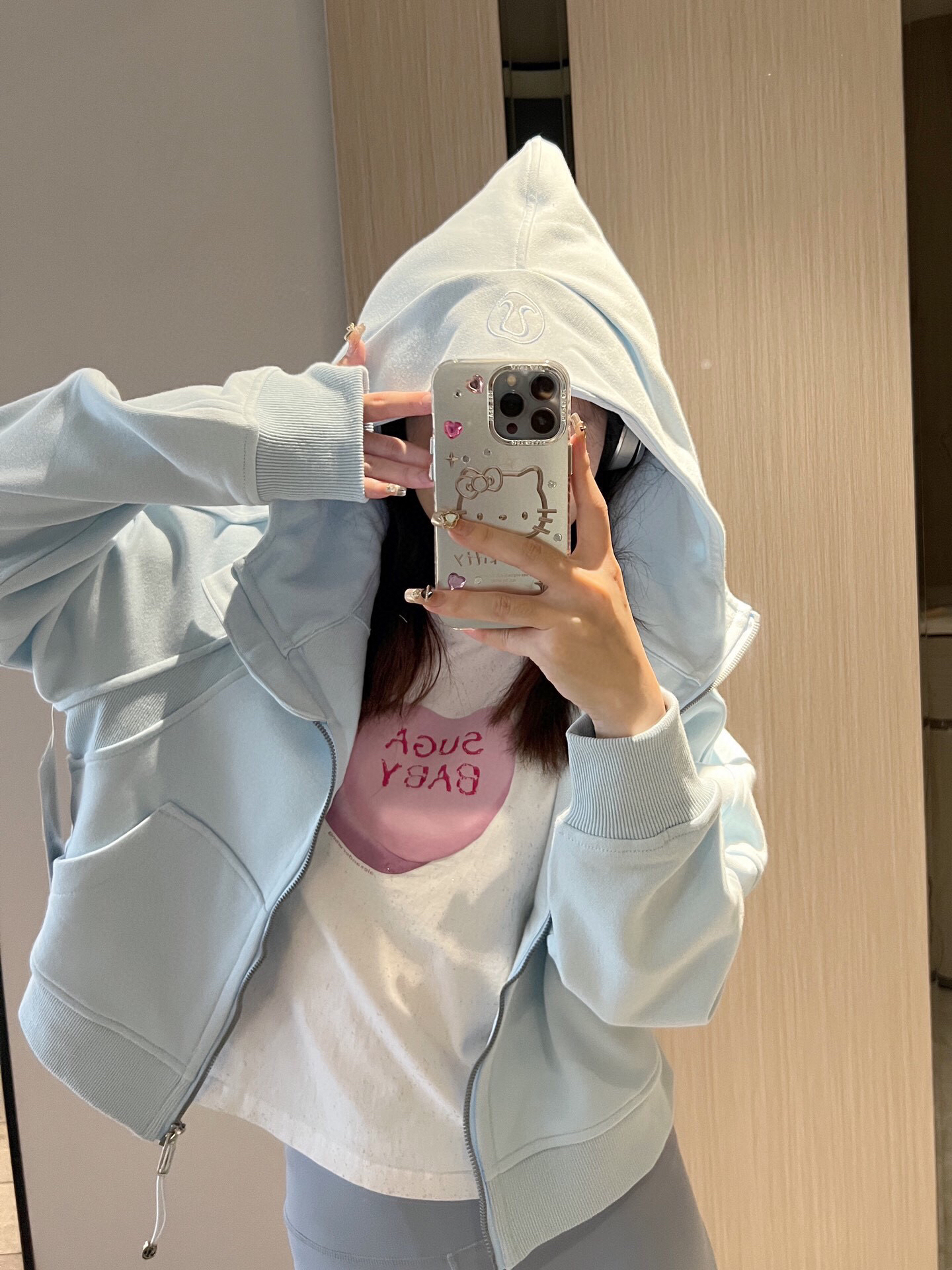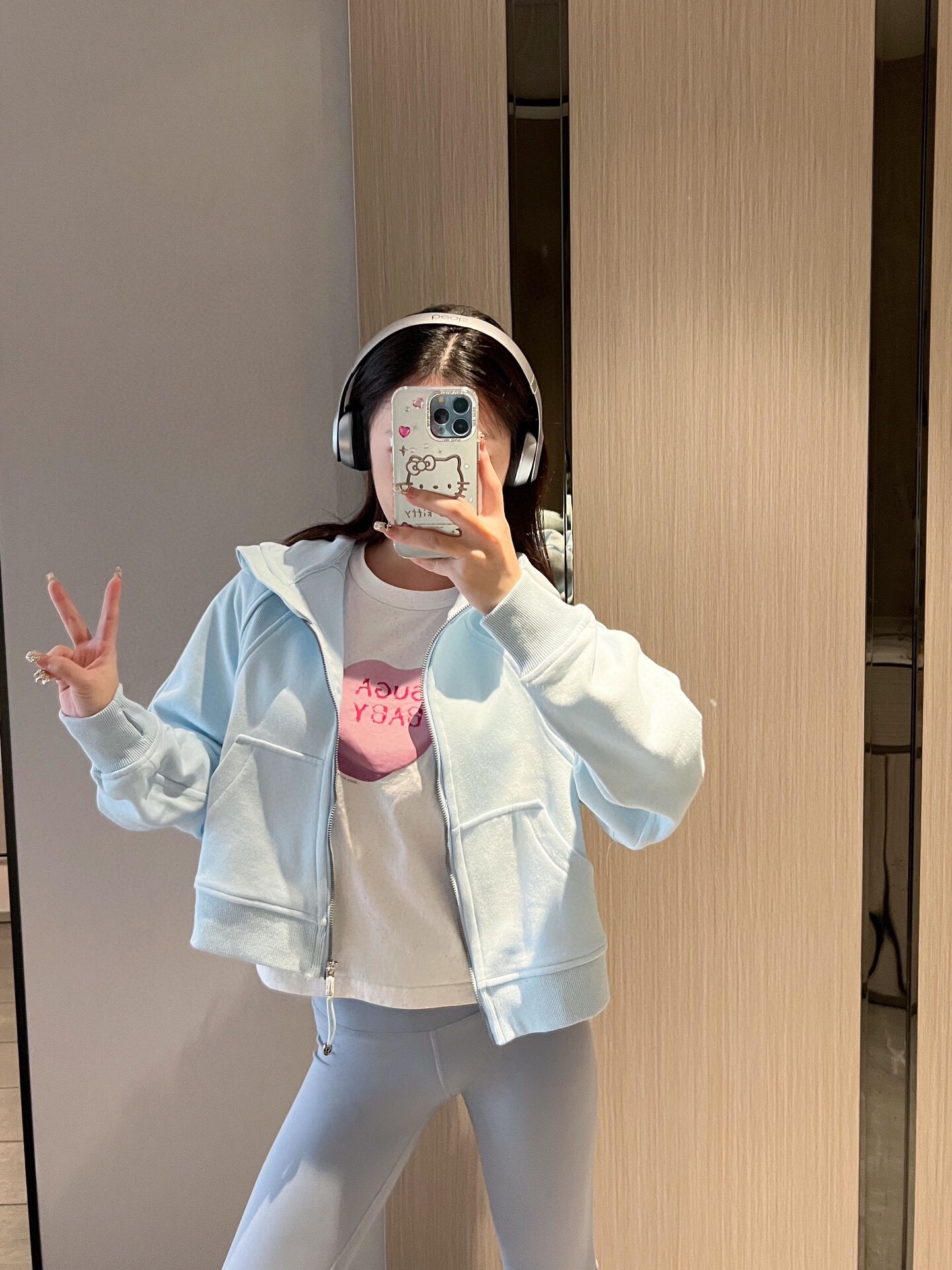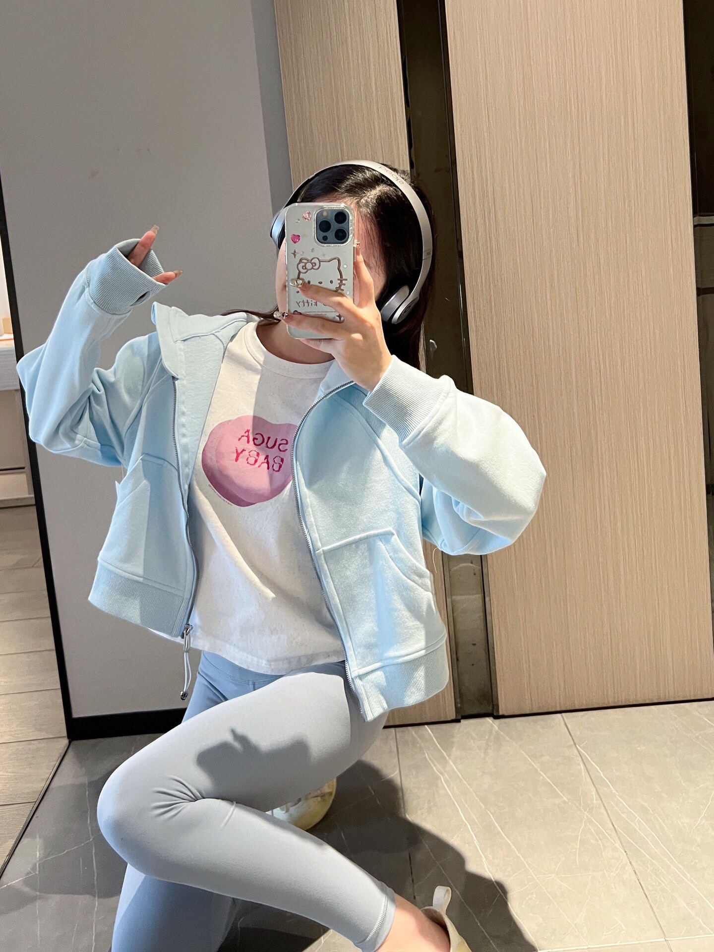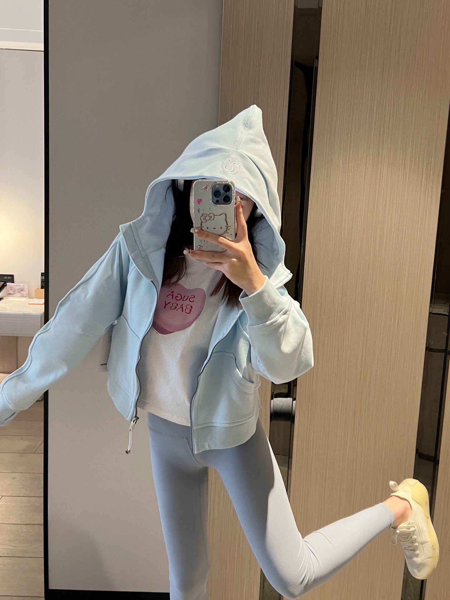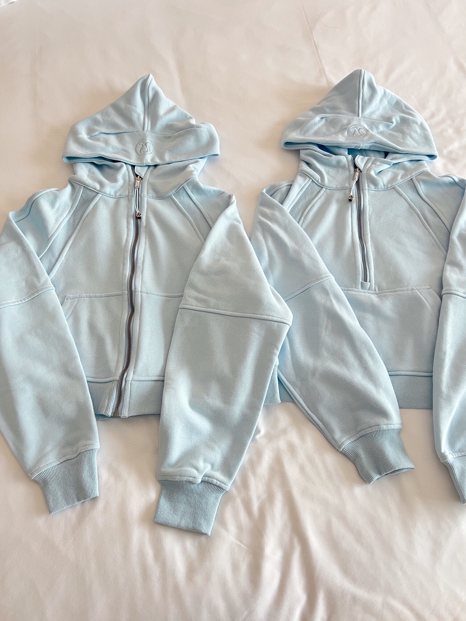 太嫩乎了~ ⬆️lululemon scuba宽松版粉末蓝 ⬇️lululemon 瑜伽裤牛仔蓝