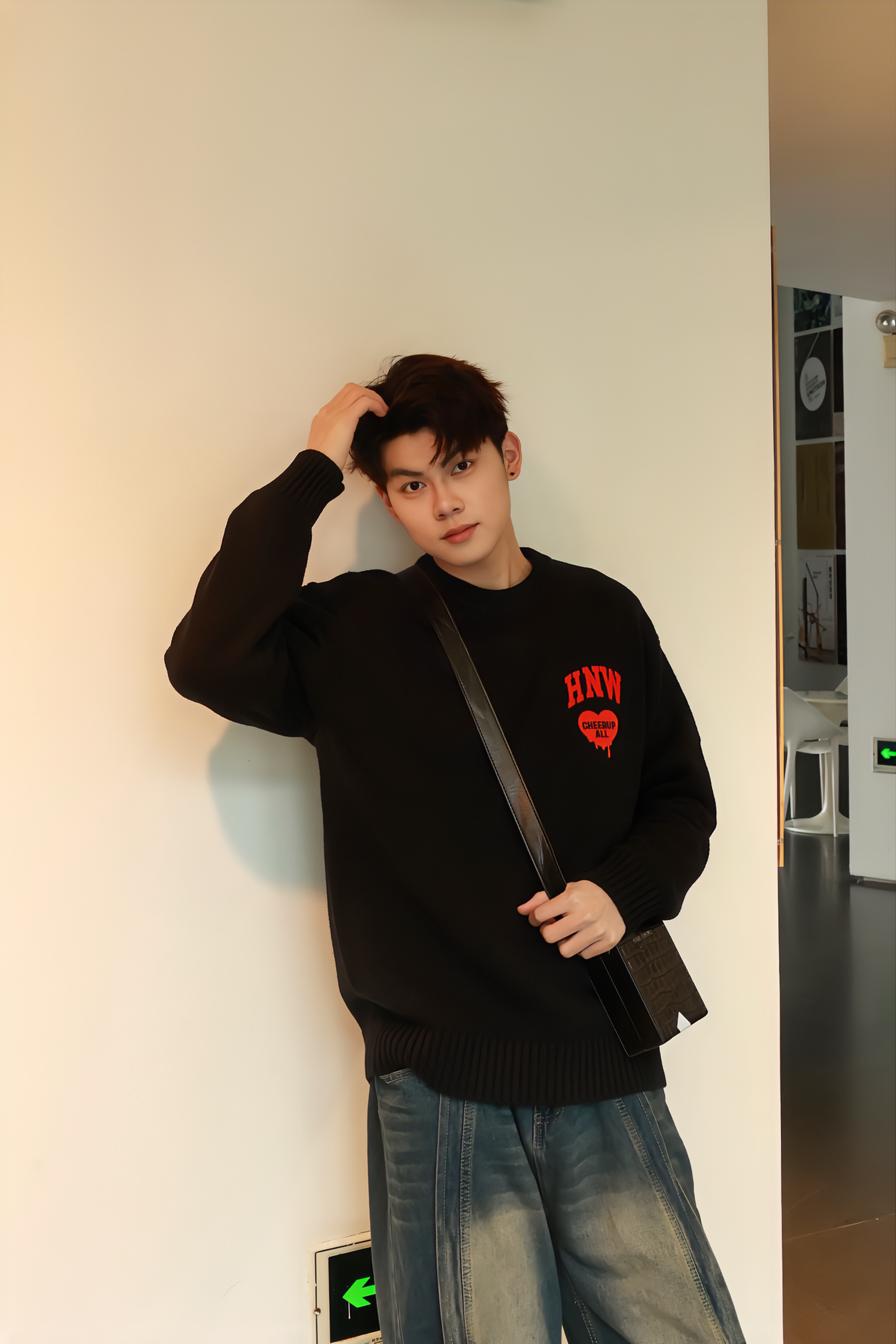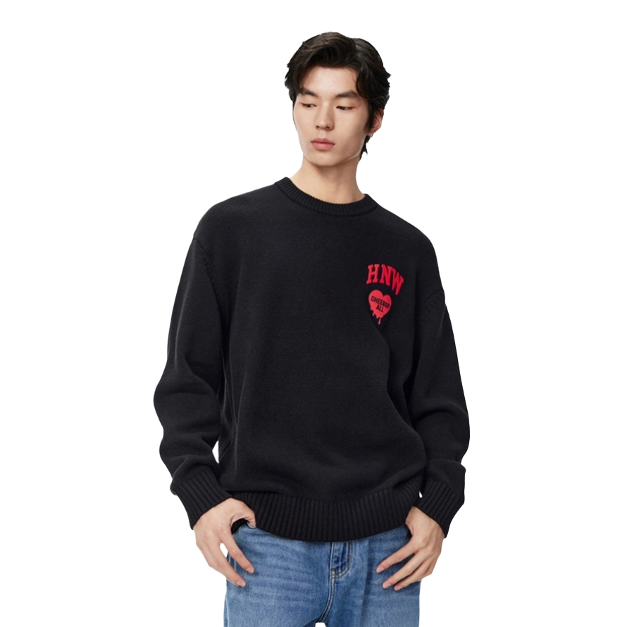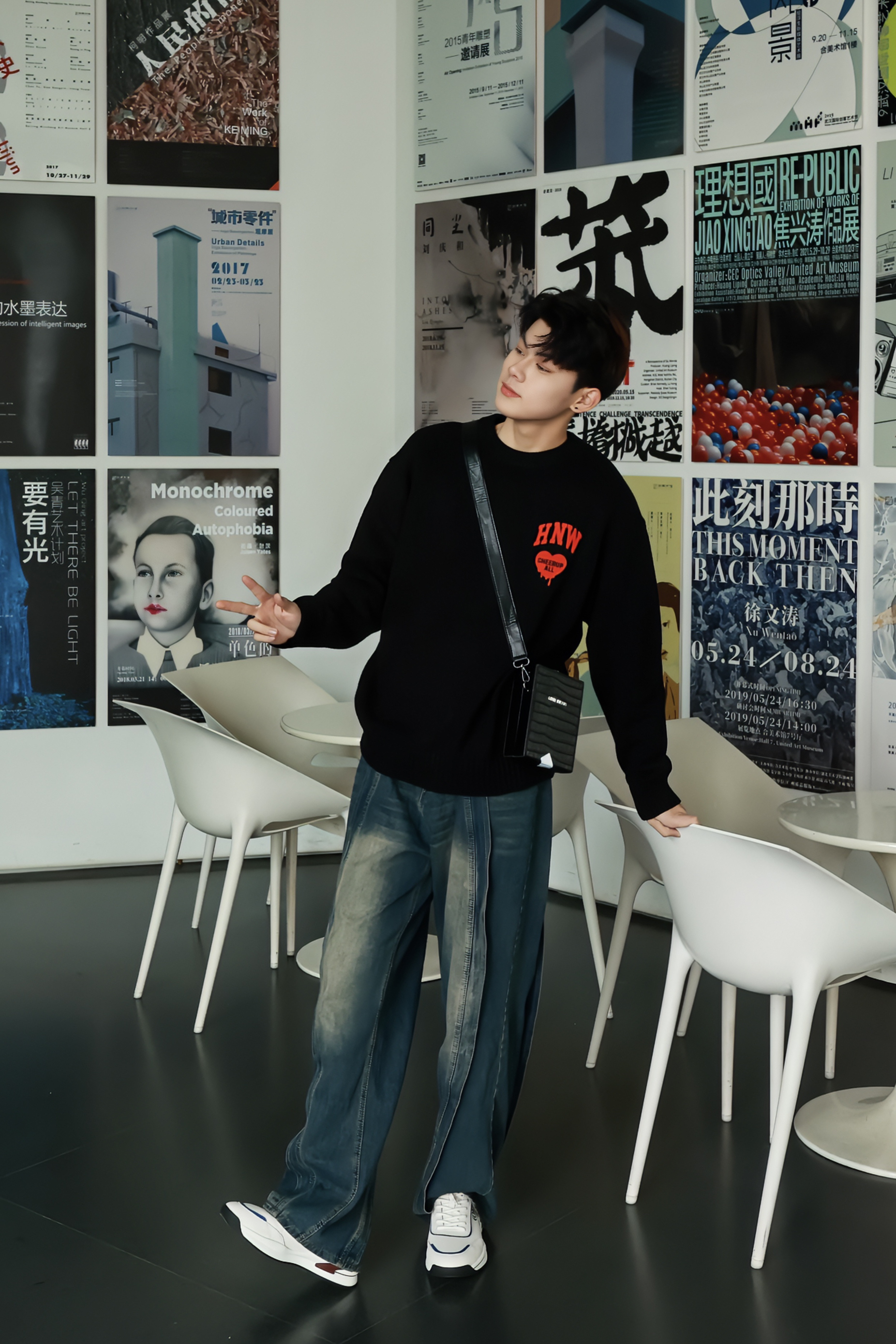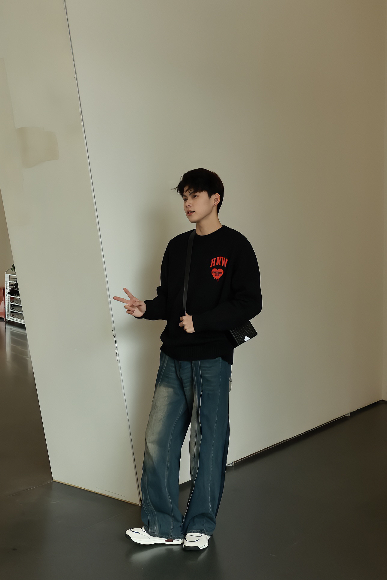 哈喽小伙伴们 这里是阿祖 - 新年穿搭必须身上带点红呀~ 今天的OOTD蛮好看的 慵懒的毛衣上身效果还不错 经典黑色耐看又百搭 ~ 和胸前的爱心刺绣形成鲜明对比❤️ 小小的一个刺绣精致度还是很不错的! 整件搭配牛仔裤就很出片👖 基础款毛衣怎么搭配都不出错❌ - 👦🏻我的身高/体重: 182cm/58kg 👔: PEACEBIRD MEN/太平鸟男装 我的上身尺码:XL码 合适