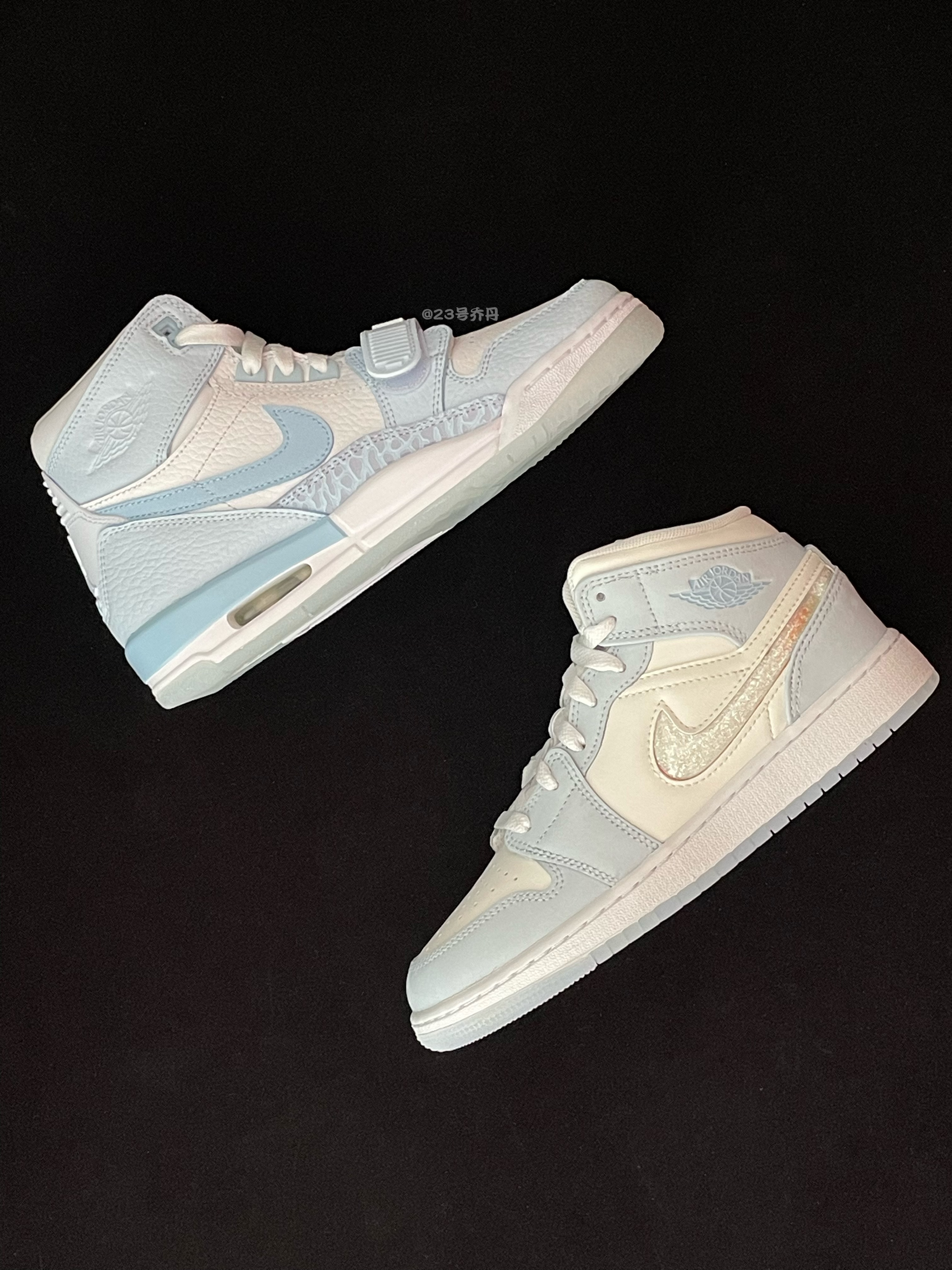 今天给大家分享两双配色很清爽的板鞋👟 Jordan 312&Air Jordan 1 Mid『冰🧊蓝』 整双鞋由白色和冰蓝色为主色调搭配 鞋面选用了易于打理的光面皮革材质 鞋头的密集透气孔保证了一定的透气性 鞋身多处均设计有品牌Logo图案 白色的中底和冰蓝色半透明水晶大底收尾 整体来说这是两双兼具颜值质感及设计的板鞋 配色清爽 百搭耐看 适合日常休闲或通勤 『Jordan312』质感和性价比更高...