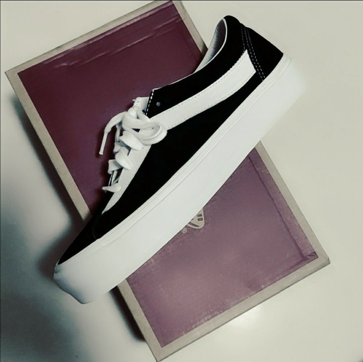 鞋款名称 Vans Bold Ni Staple反绒毛黑色男女同款 外观配色 黑白配色,yyds设计细节不错 上脚感受 这款鞋尺码偏大,建议选购尺码时买比平时尺码小半码 搭配建议 黑白配色,百搭好看,夏季可以搭配短裤👀