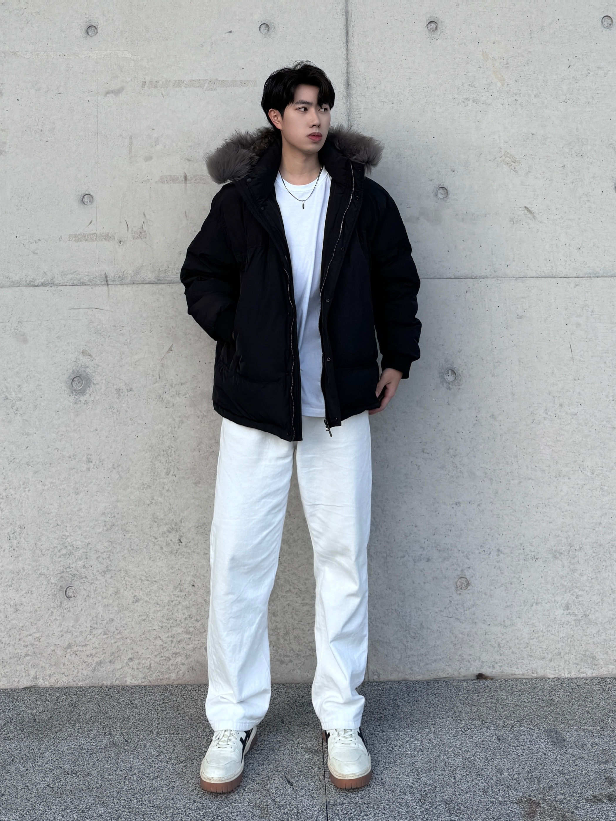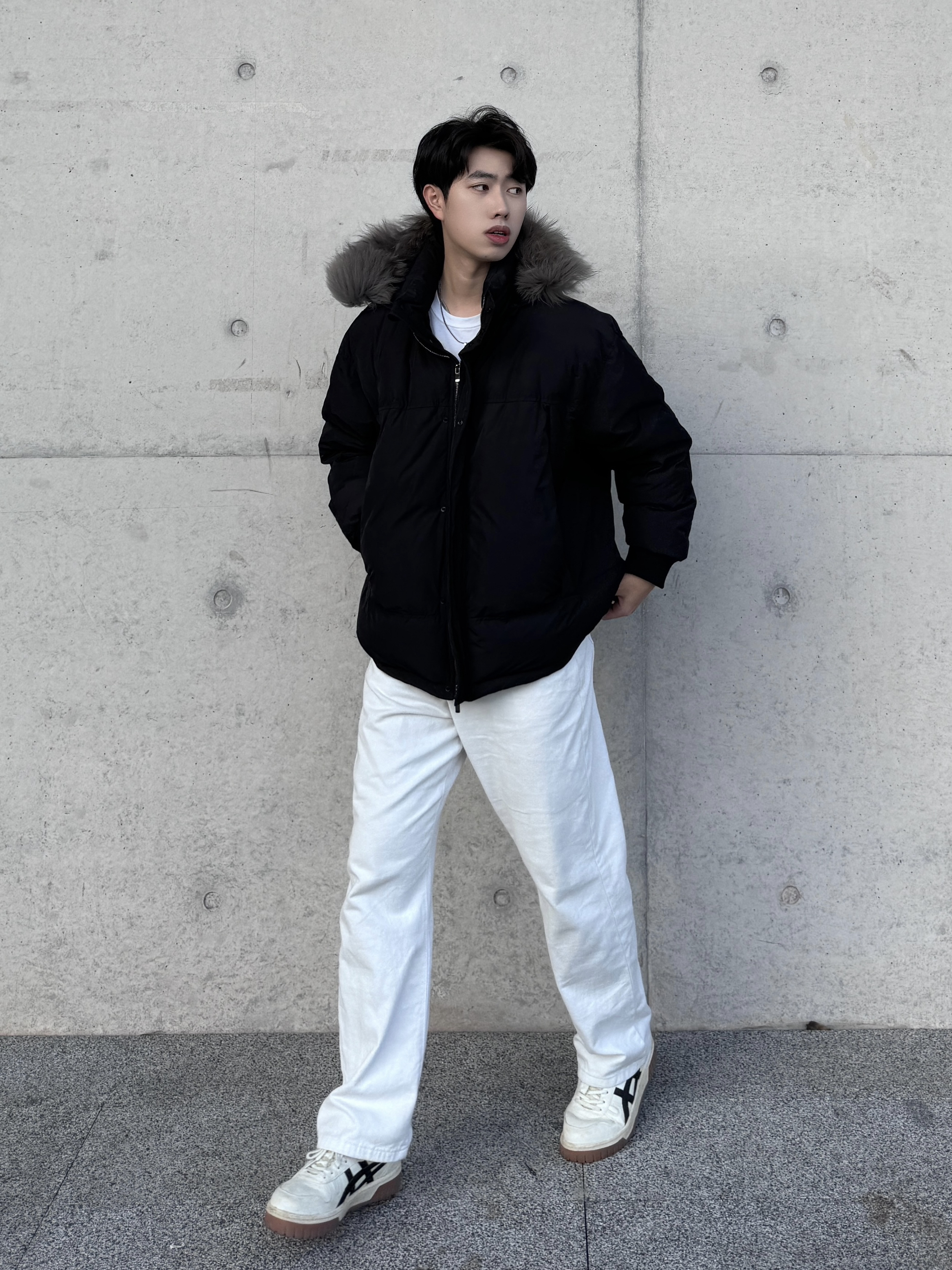 身高|体重:186cm 79kg 🧍♂️ 穿搭风格:这个冬天❄️是谁又一个人呢?哦是我啊!好好好,没关系,冷是不在怕的,羽绒服一套,帽子一戴,谁也不爱🔥 👔 上衣:一件羽绒服陪我度过南方的冬天⚡️这个帽子我属实爱了哈哈哈去北方都不用戴什么耳罩👂冷帽🧢喽!双拉链➕真毛领,摸着好柔软haha😂左右两边的大口袋对于出门要带好多东西的人来说太友好了haha🤌 👖 下装:和上衣搭了一套,一黑一白🖤🤍...